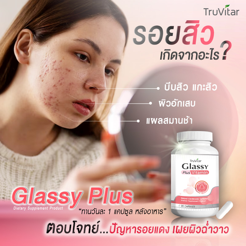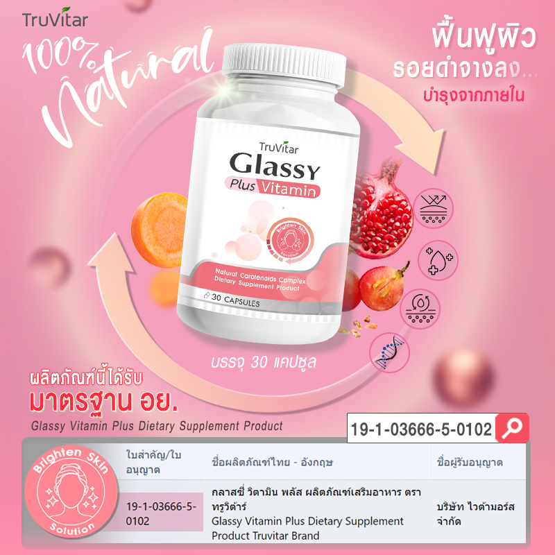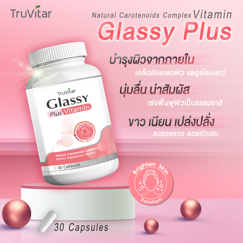 ✅ส่งฟรีทันที🚛 (1แถม1=60 แคปซูล)Truvitar Glassy Vitamin Plus ผลิตภัณฑ์เสริมอาหาร กลาสซี่ วิตามิน พลัส 30 แคปซูล