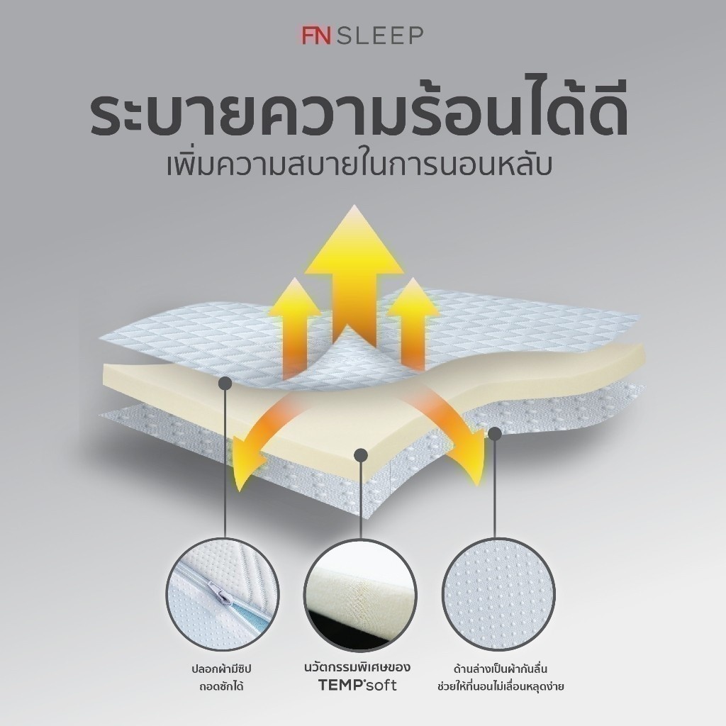 FN ท็อปเปอร์เมมโมรี่โฟม ที่รองนอนเพื่อสุขภาพ Topper Ergonomic Memory Foam ปรับอุณหภูมิตามร่างกาย CHERISH TEMPSoft