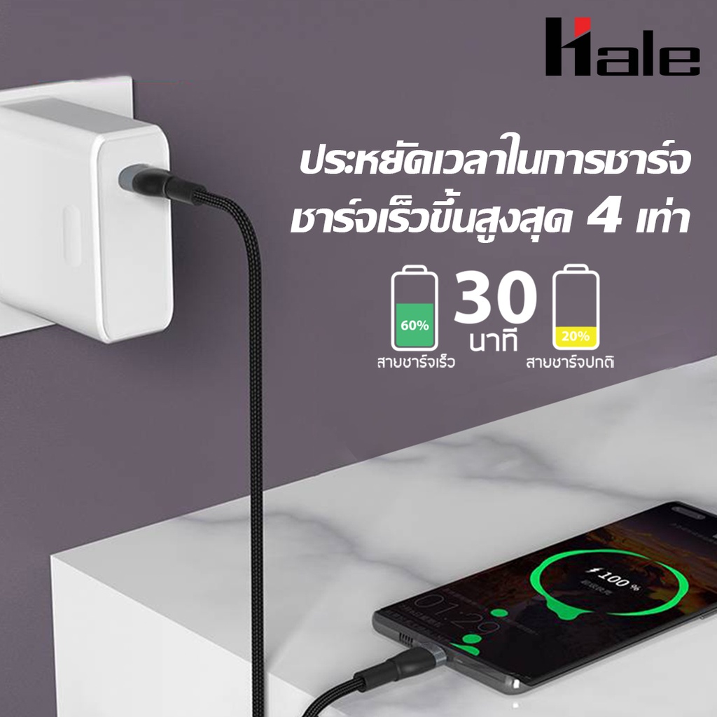 Hale HC-20 สายชาร์จเร็วType-C 100W 5.0A แบบถักอย่างหนา Fast charge cable type c Super Fast Charge