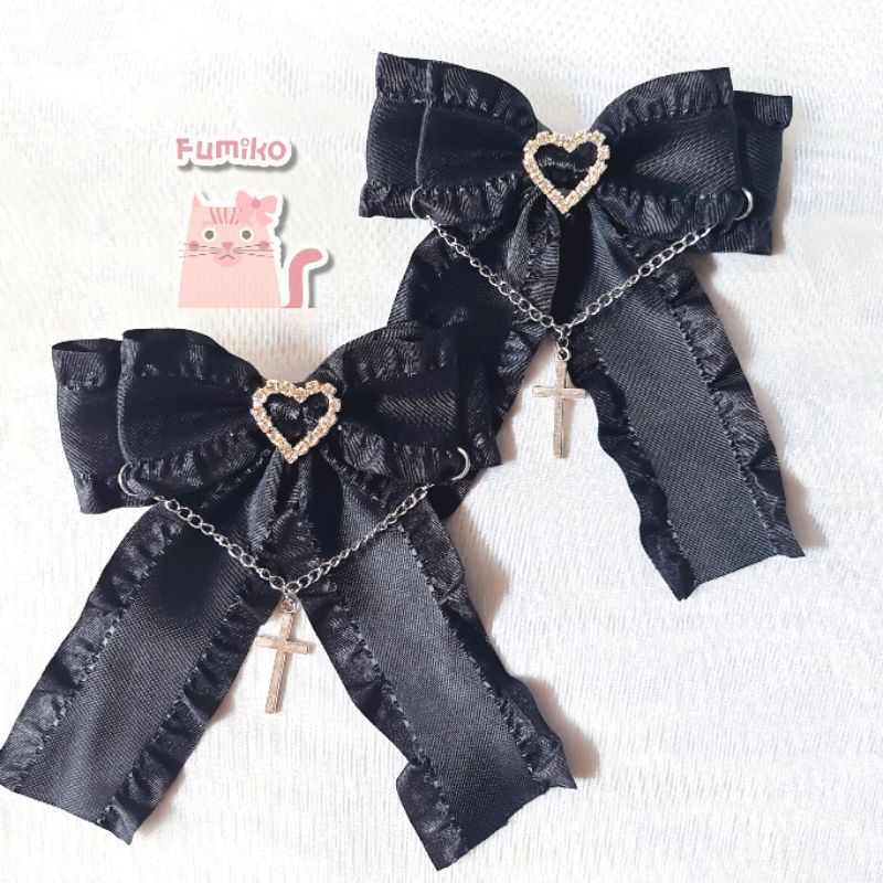 โบว์ติดผมสไตล์ โรจิต้า โกธิค จี้กางเขน 🖤 (ต่อชิ้น)