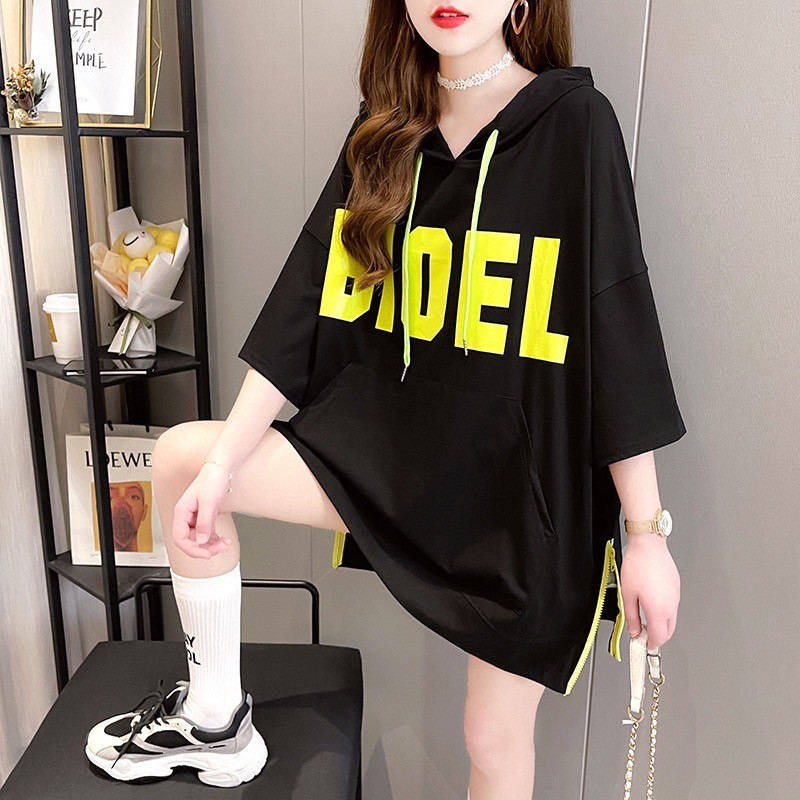 เสื้อแขนสั้นมีฮู๊ด Oversize (อก 50-64 นิ้ว) สกรีน BIOEL มีกระเป๋าหน้า ผ้าคอตตอน สินค้าพร้อมส่ง A37