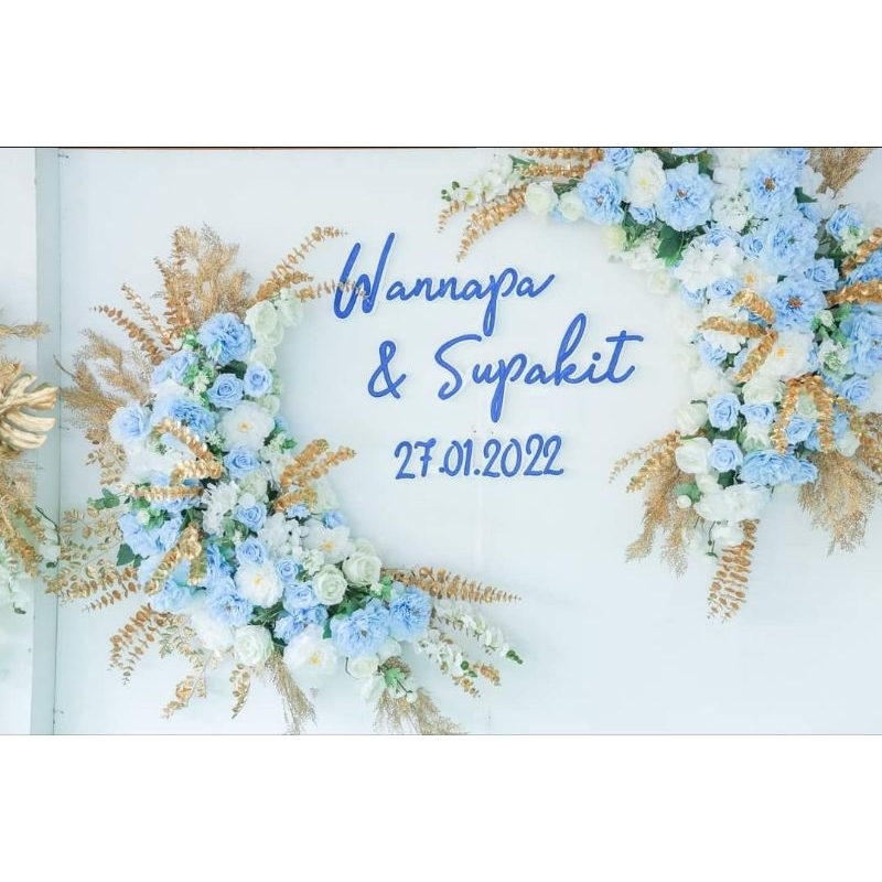 ชื่อบ่าวสาว และวันที่สำหรับติดแบคดรอปงานแต่ง หนา3มม.รองโฟม