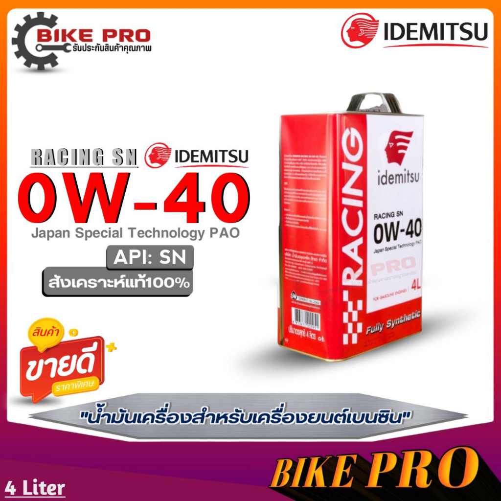 น้ำมันเครื่องเบนซิน IDEMITSU อิเดะมิซึ Racing 0w-40 SN สังเคราะห์แท้100% ขนาด 4 ลิตร