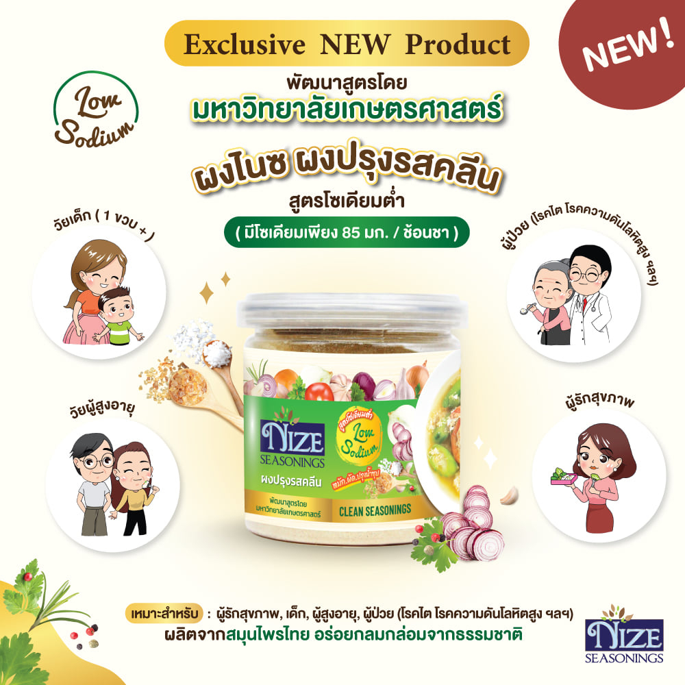 NIZE ผงไนซ ผงปรุงรสคลีน สูตรโซเดียมต่ำ (KAS)