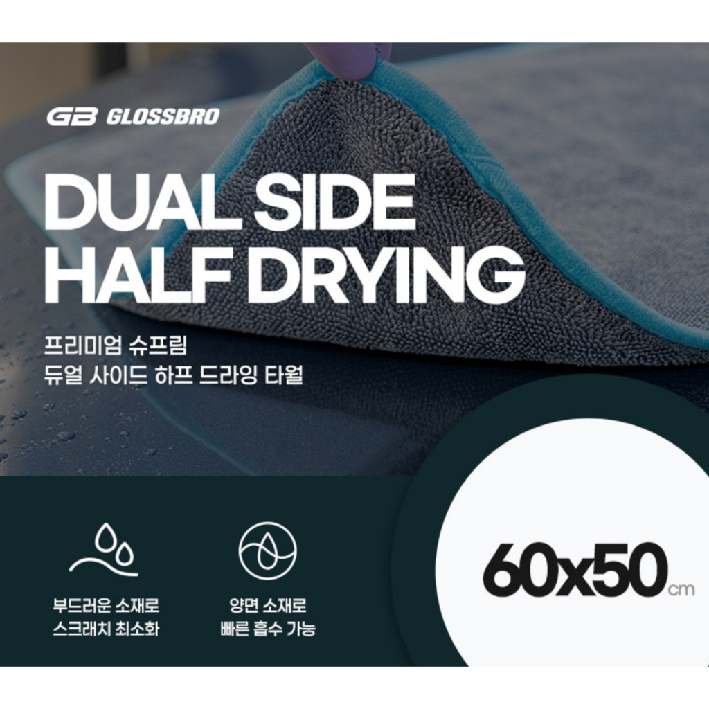 GLOSSBRO Supreme Half Dual Side Drying Towel ผ้าเช็ดแห้งถนอมสีรถ รุ่น 2 หน้า (60X50cm)