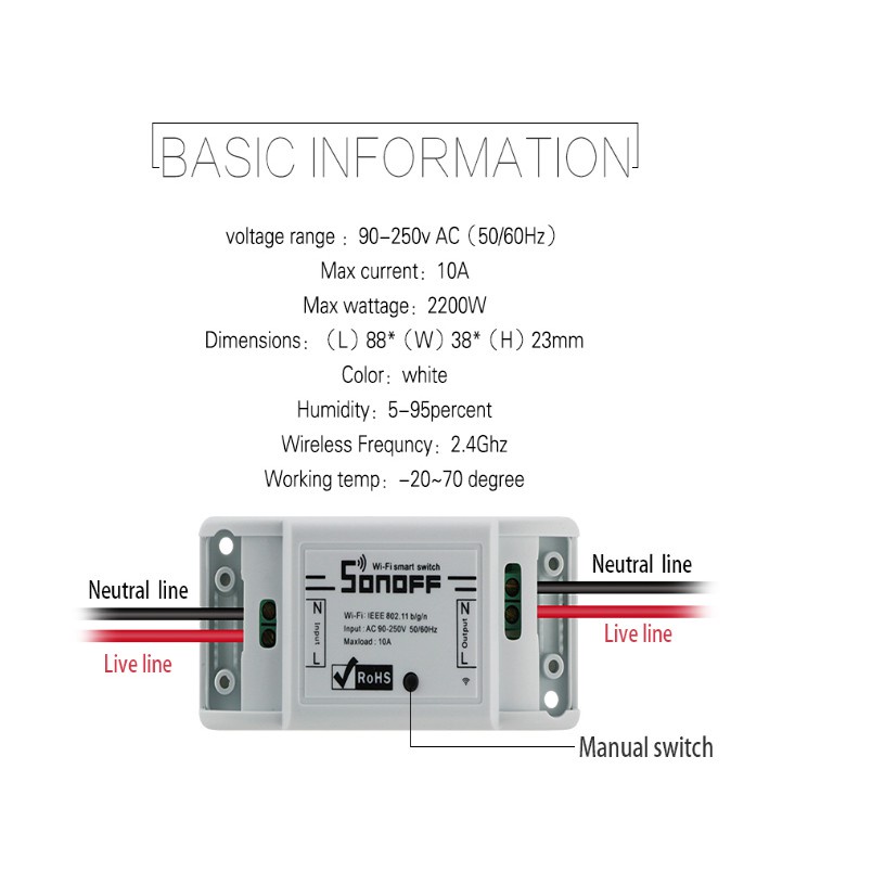 Sonoff Basic R4 (NEW VERSION) WiFi switch 10A 2200W ใช้ Google Home ได้ Smart Home Wireless IOS Android [ MT ]
