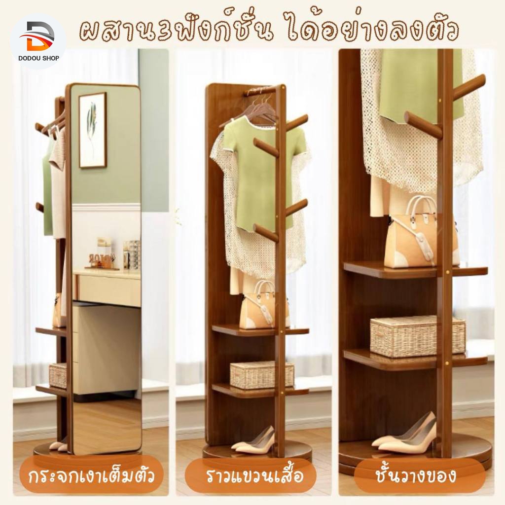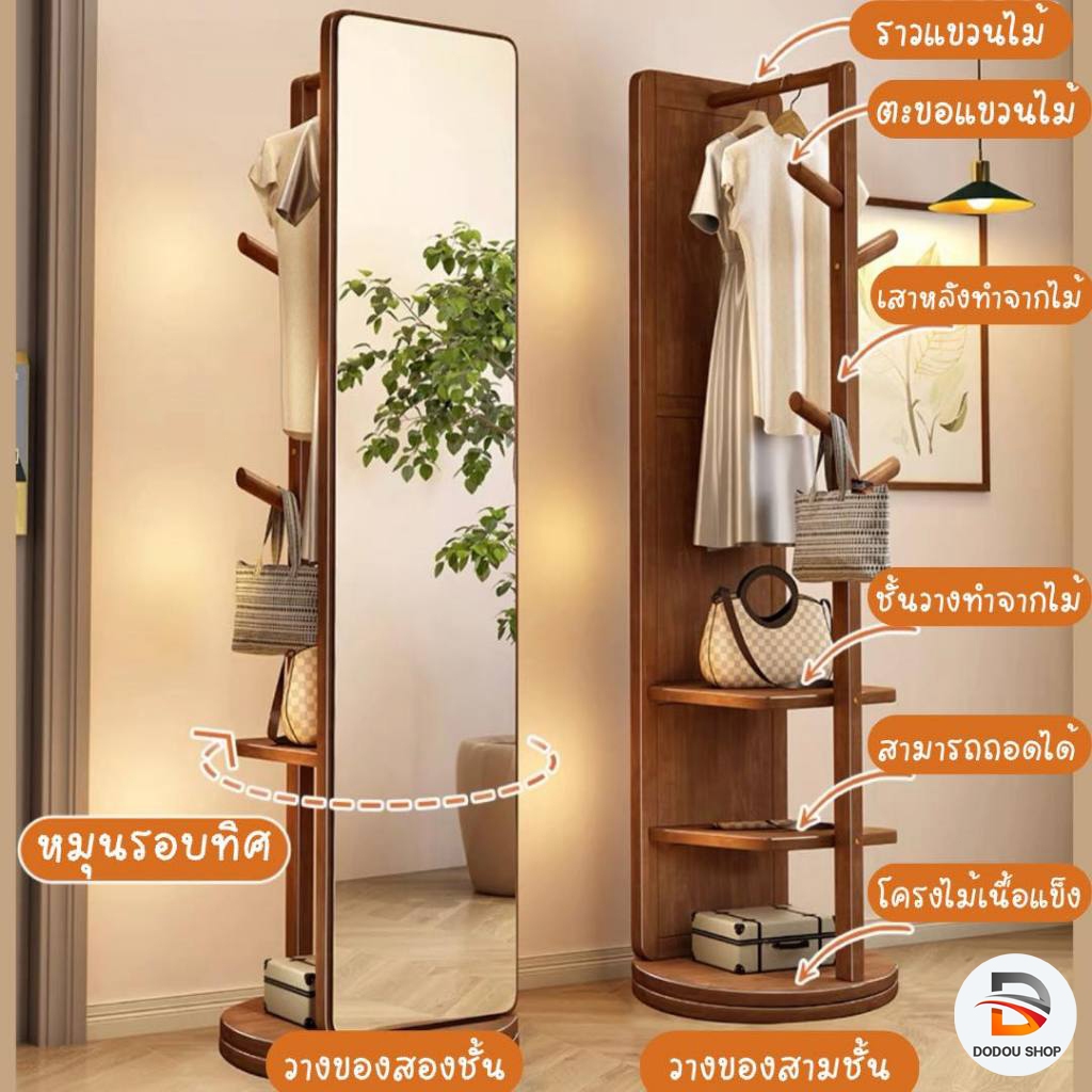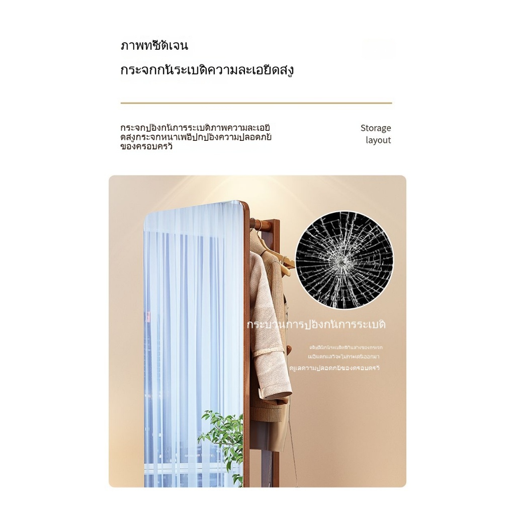 กระจกตกแต่งห้อง ที่แขวนเอนกประสงค์ ราวแขวนไม้ ไม้สนแท้ กระจกขอบหยัก รูปแบบมินิมิมอล สไตล์เกาหลี