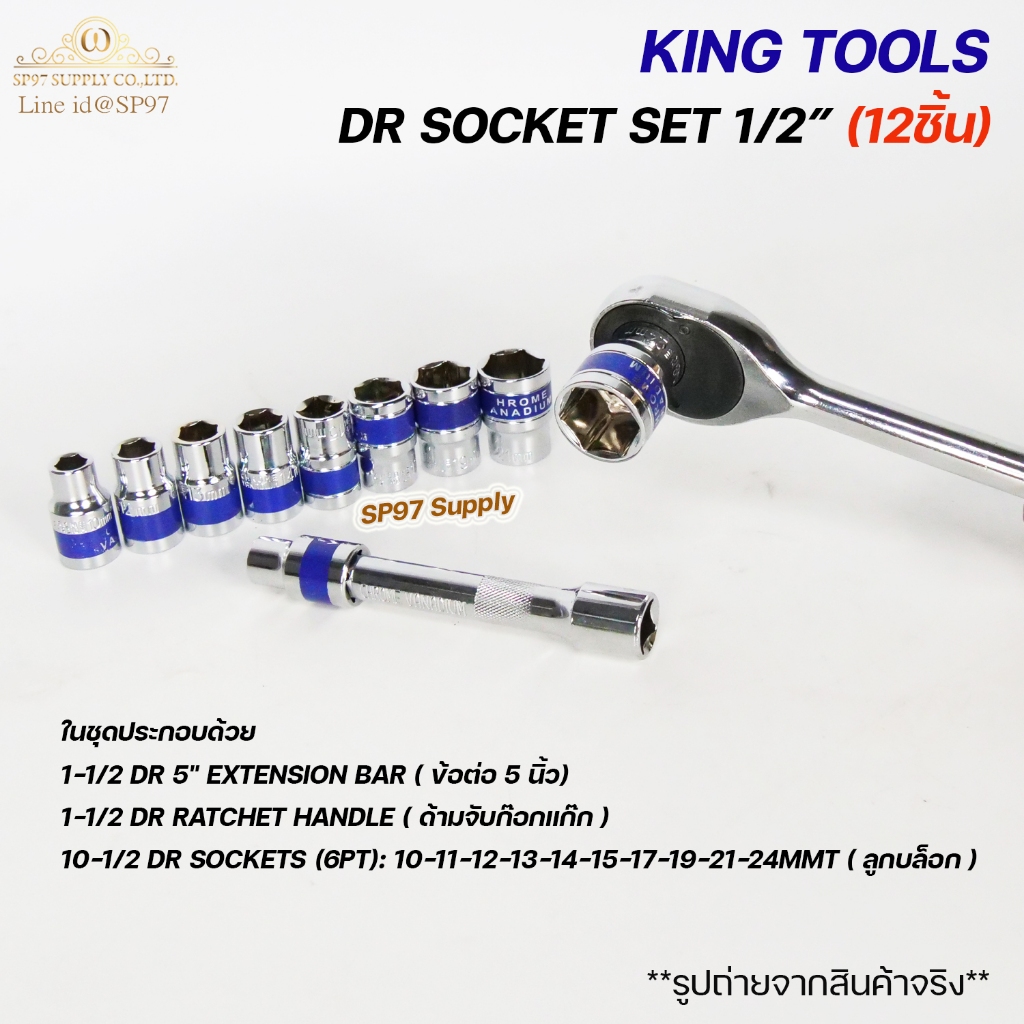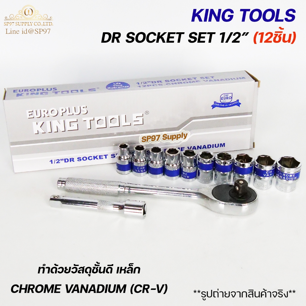 EURO KING TOOLS เครื่องมือช่าง ลูกบล็อก พร้อมด้ามจับ ขนาด 1/2นิ้ว DR SOCKET SET 12 PCS (1ชุดมี12ชิ้น)