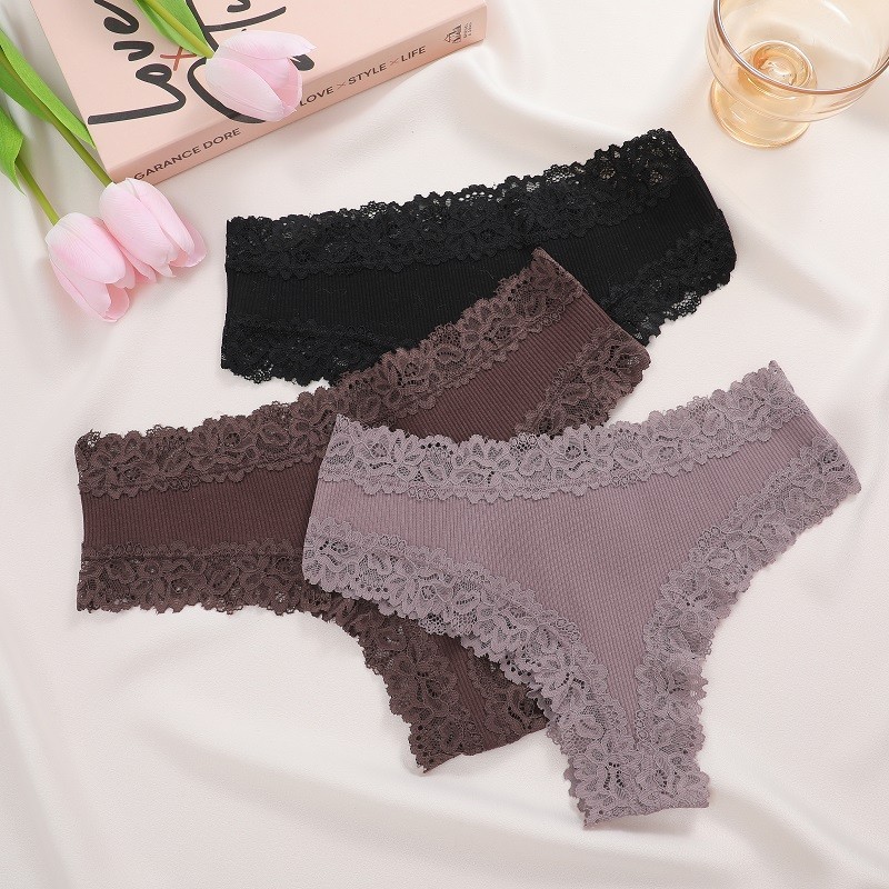 Finetoo กางเกงชั้นใน ผ้าฝ้าย พิมพ์ลายลูกไม้ ดอกไม้ สวมใส่สบาย สําหรับผู้หญิง