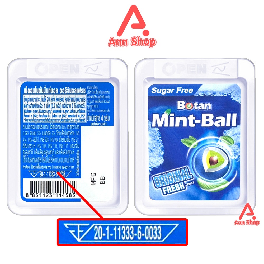 Botan Mint-Ball Original Fresh เม็ดอม โบตัน มิ้นท์บอล ออริจินอลเฟรซ [20 ตลับ/1 ห่อ สีฟ้า] AA 3211 ลมหายใจสะอาด หอมสดชื่น