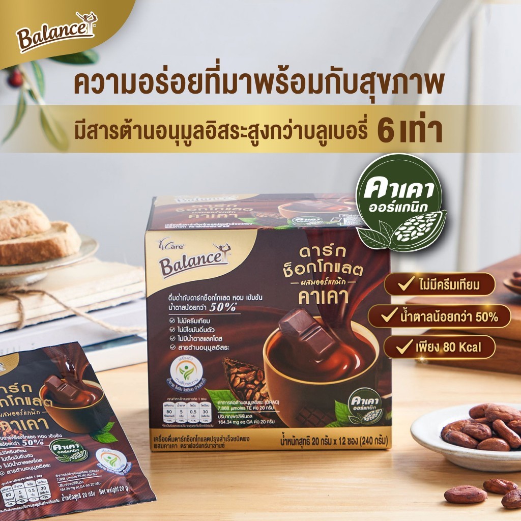 4Care Balance ดาร์กช็อกโกแลตชนิดผงผสมคาเคาออร์แกนิก Dark Chocolate Drink mixed with Organic Cacao