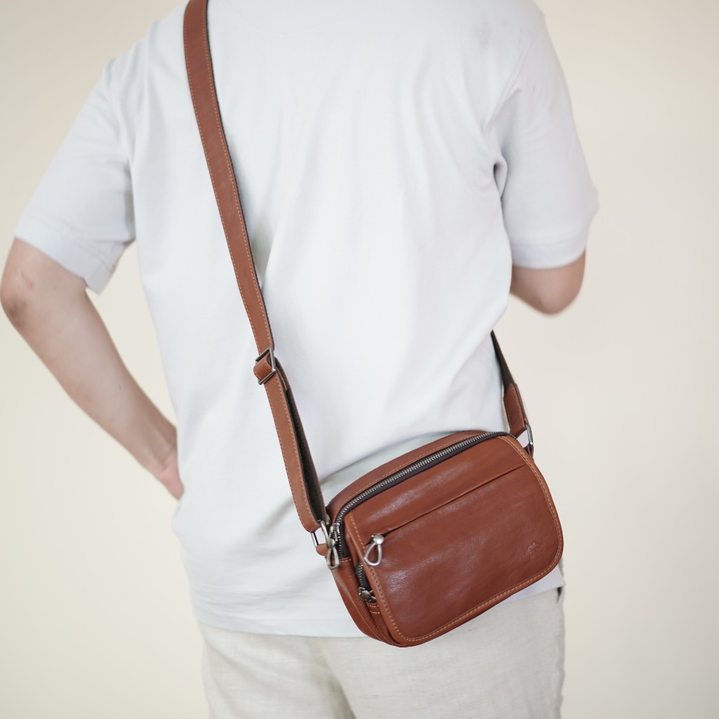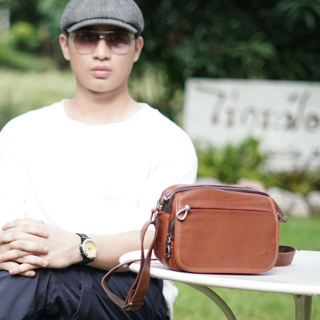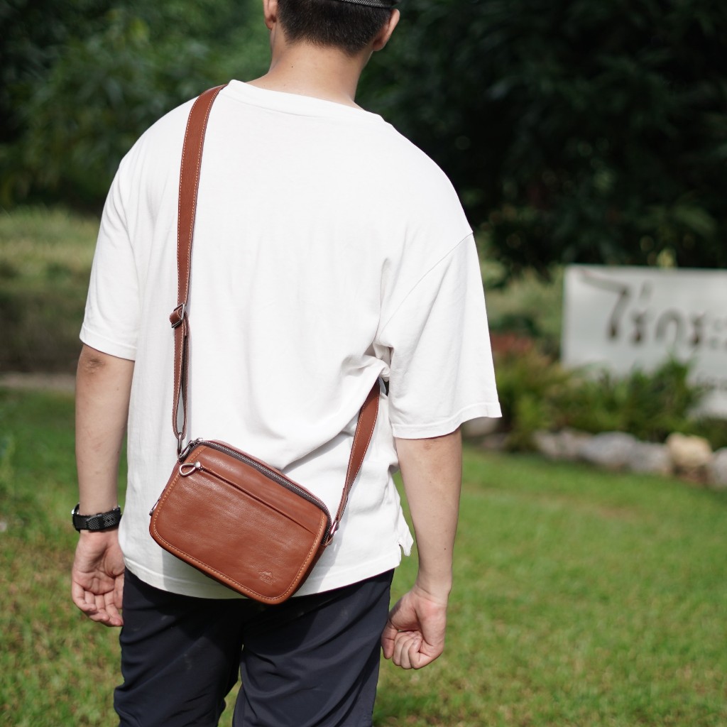 กระเป๋าหนังผู้ชาย /กระเป๋าหนังสะพายข้าง สีน้ำตาล รุ่น B-CBR-1525