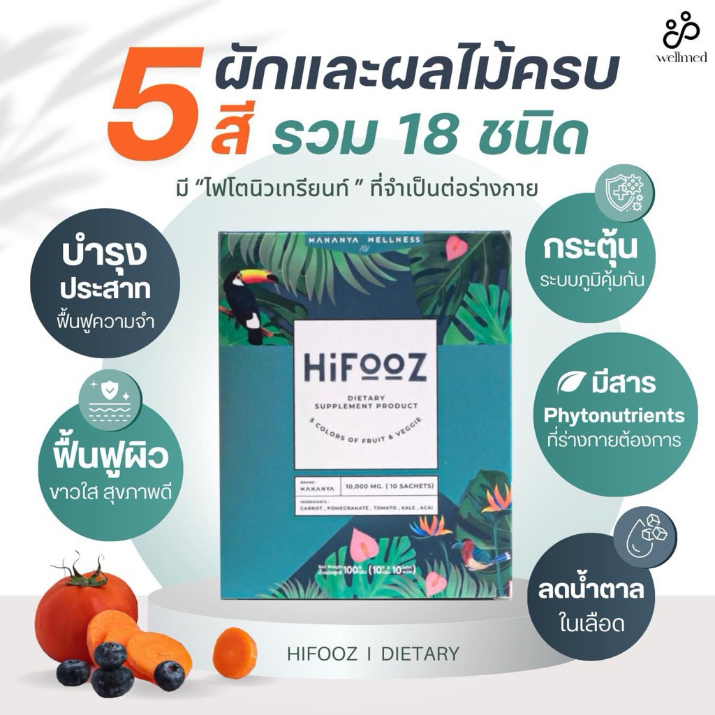 เซตคู่📌ผงผักผลไม้รวม 5 สี รวม 18 ชนิด กับ Super glow ของแบรนด์ wellmed