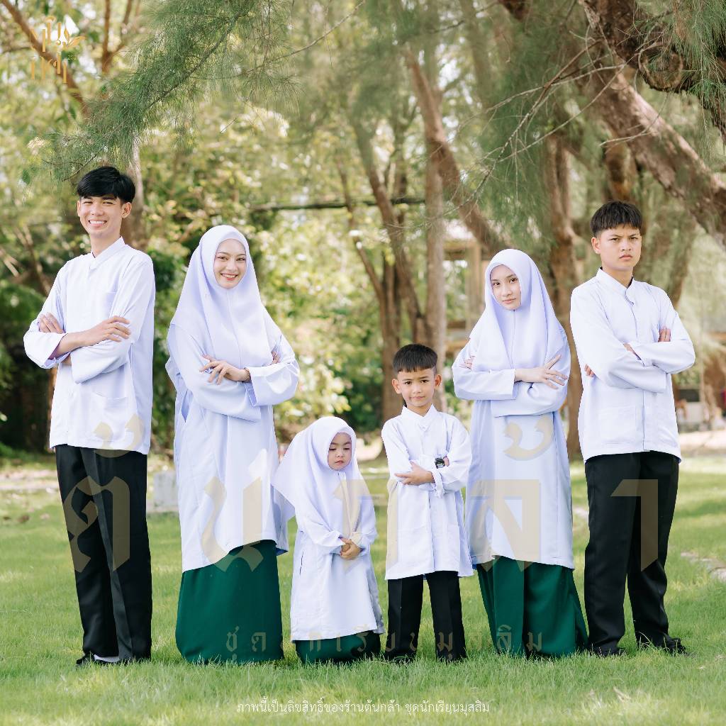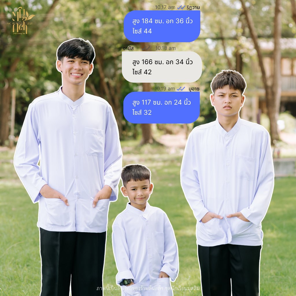 (มีบิลเบิก)เสื้อตาดีกา เสื้อคุรุสัมพันธ์ เสื้อกูรงเด็กผู้ชาย ผ้ามัน ตรา นำสมัย RN ชุดนักเรียนมุสลิม