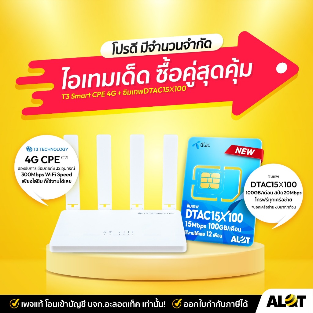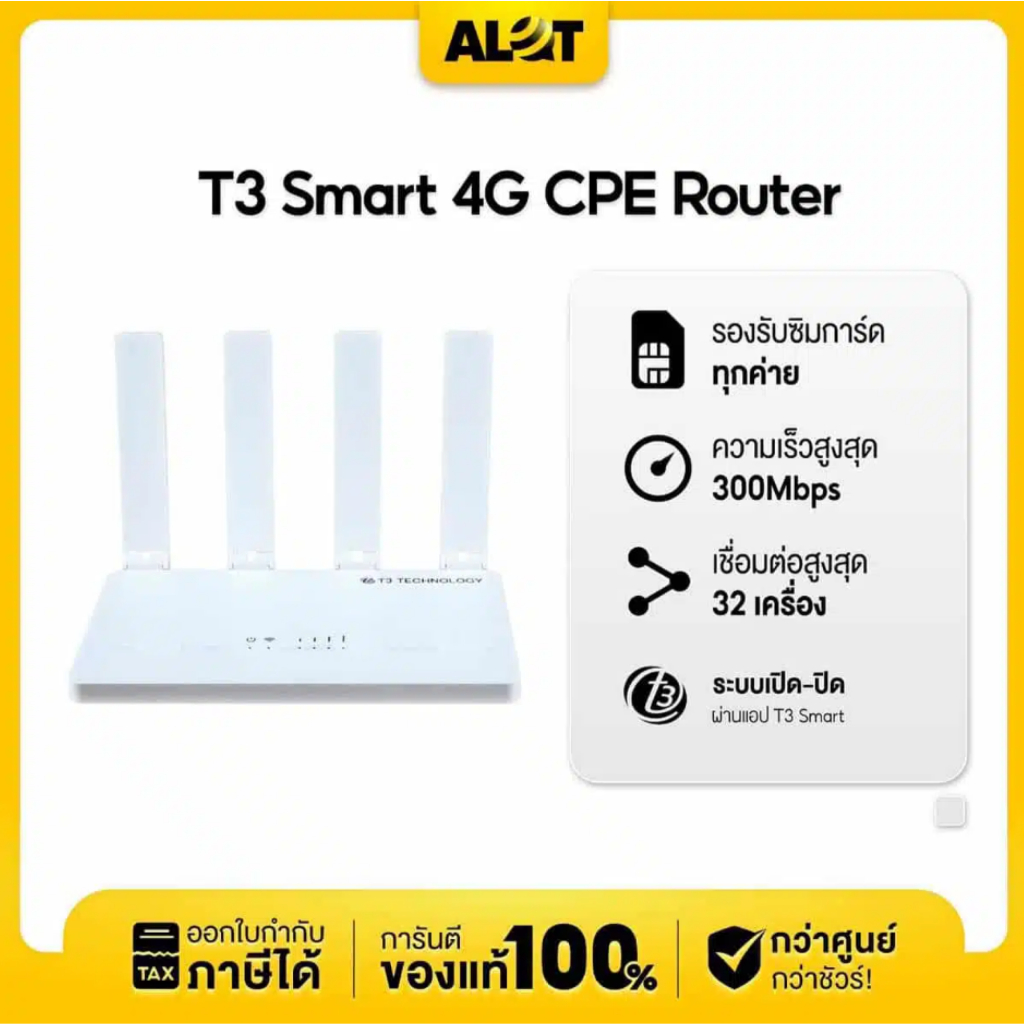T3 Smart 4G Router Wi-Fi CPE เราเตอร์ ใส่ซิม ประกันร้าน 1 เดือน กระจายสัญญาณ ใช้งานง่าย รองรับทุกค่าย Alot