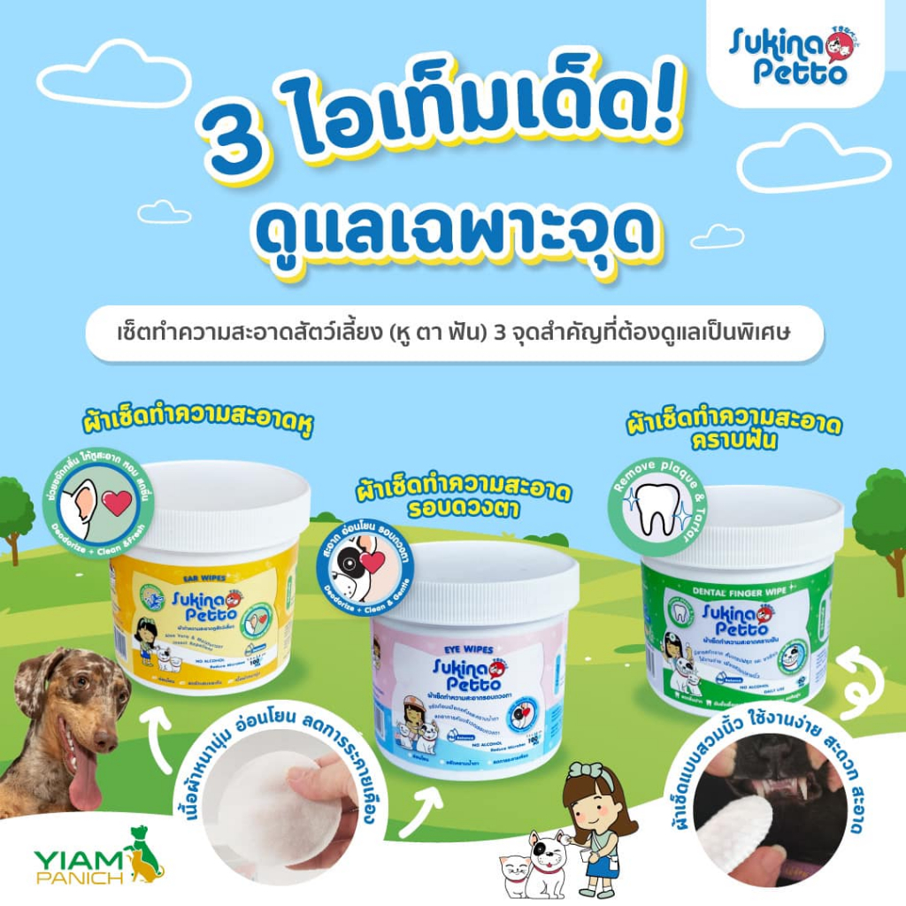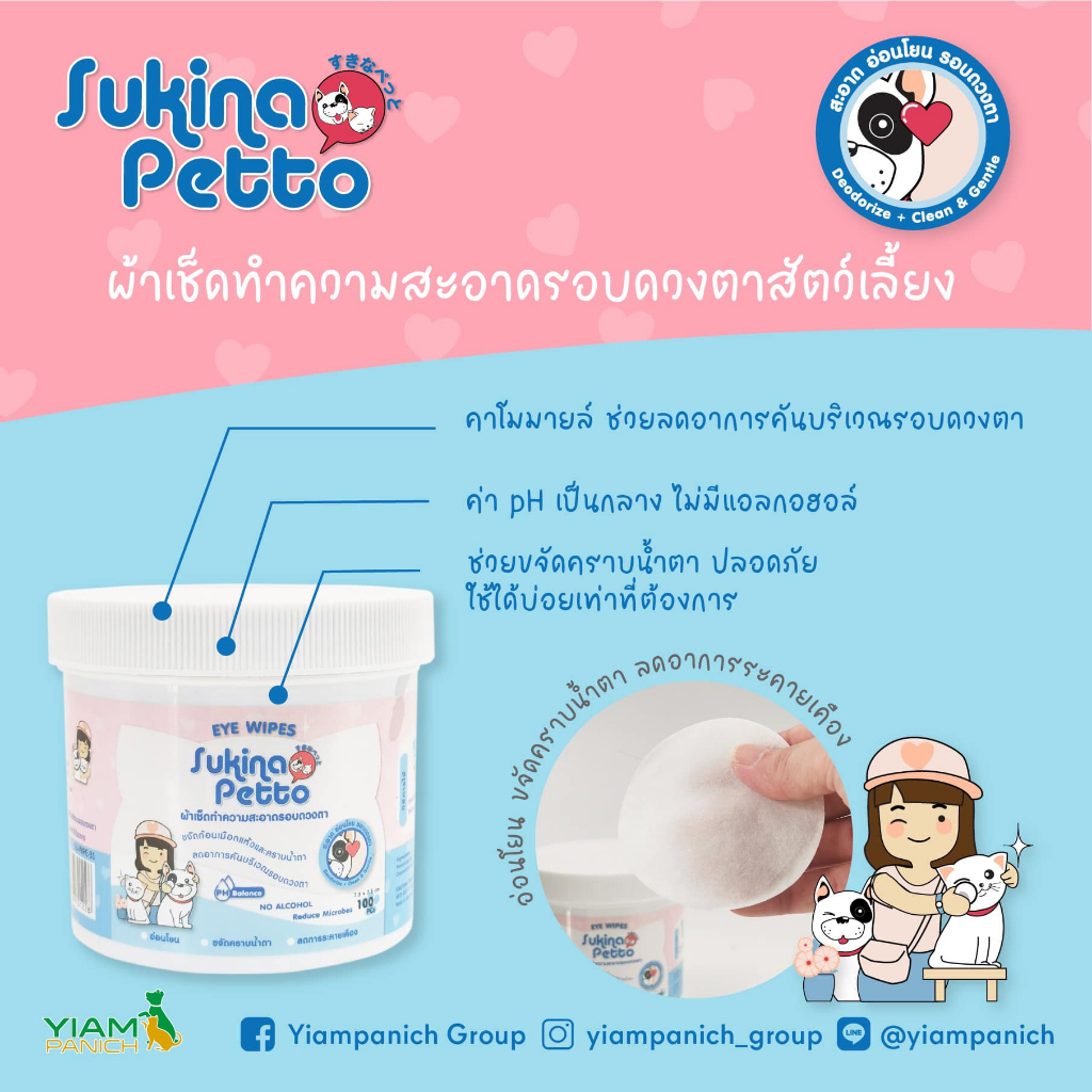 Sukina Petto ผ้าเช็ดทำความสะอาดรอบดวงตาสัตว์เลี้ยง