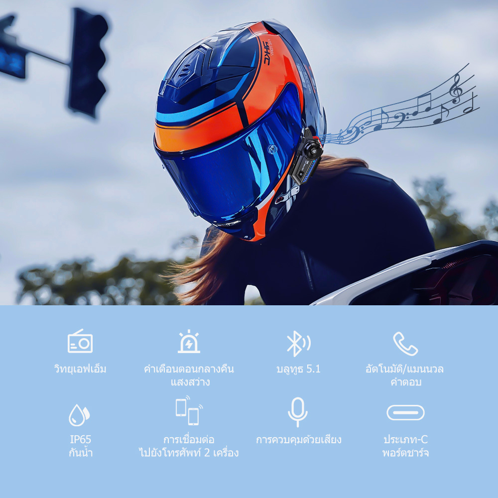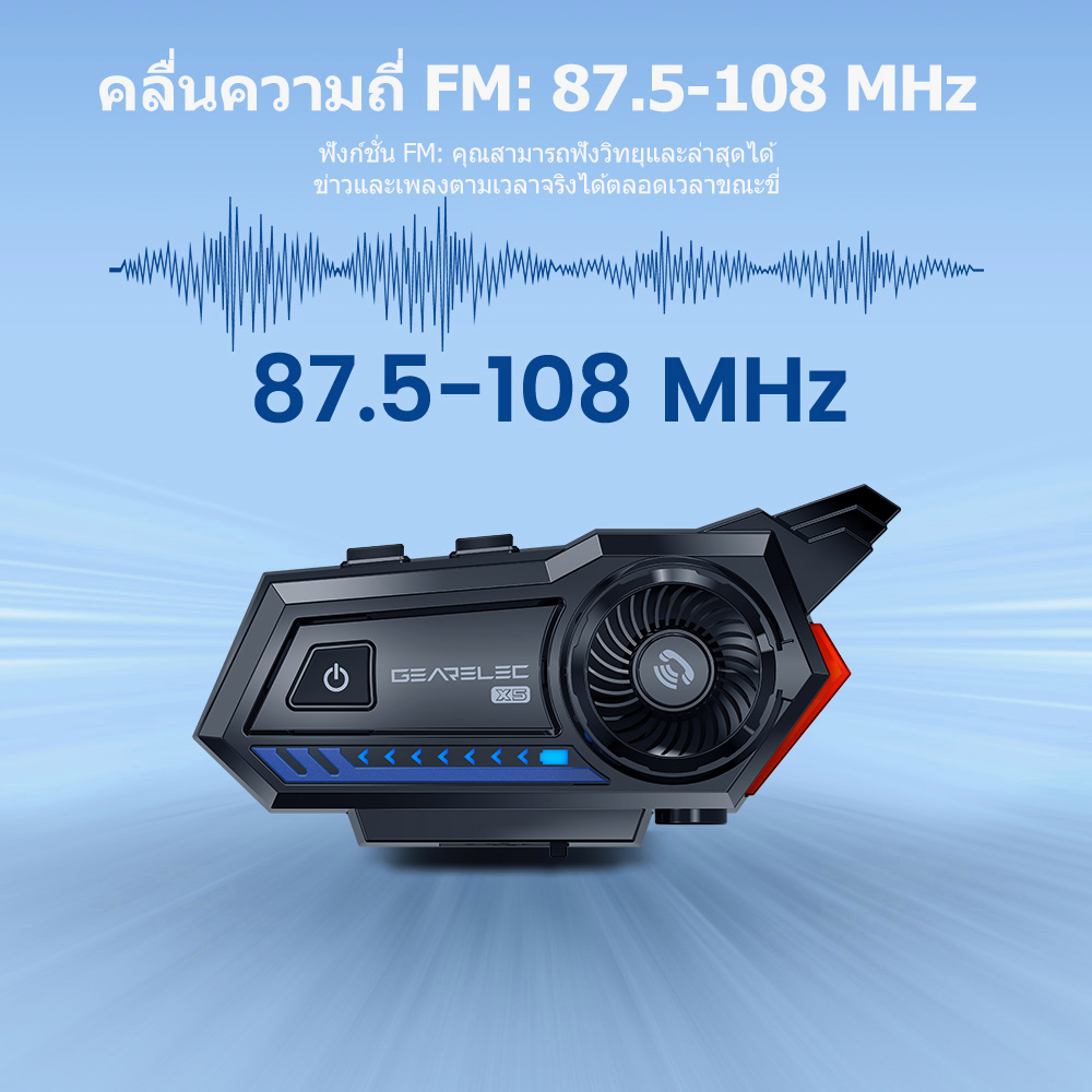 GEARELEC X5 หูฟังบลูทูธสำหรับหมวกกันน็อค บลูทูธ 5.2 กันน้ำ IP65 วิทยุ FM การลดเสียงรบกวน ไฟ RGB หมวกกันน็อคที่เหมาะสม