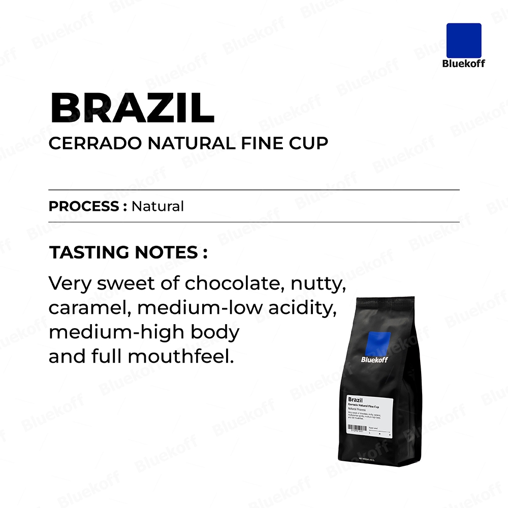 Bluekoff เมล็ดกาแฟ Brazil Cerrado Natural Fine Cup Arabica100% (1 ถุง บรรจุ 250 กรัม)