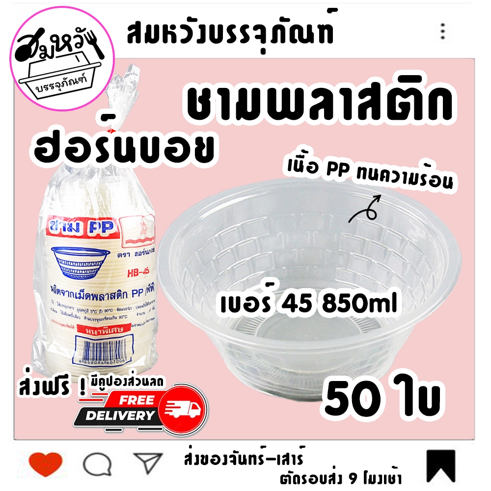 ชามพลาสติกใส ฮอร์นบอย เบอร์ 45 880ml ใส่ข้าวต้ม ใส่ก๋วยเตี๋ยว ใส่กระเพาะปลา (50ใบ/แพ็ค)