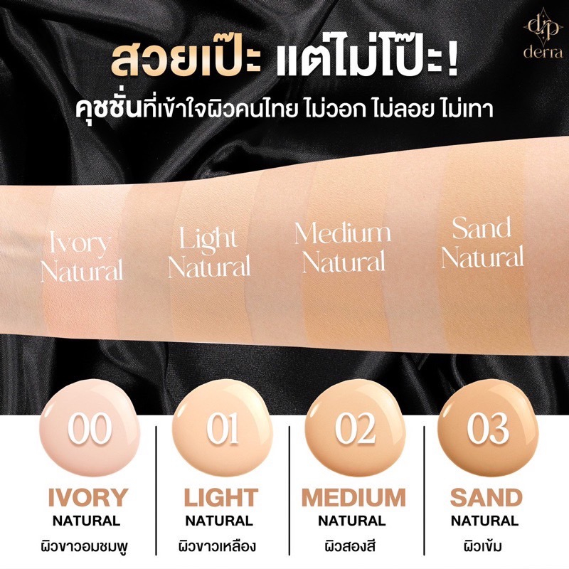 ของแท้ คุชชั่นเดอร์ร่า Derra cushion คุชชั่นเดอร่า ปกปิด คุมมัน ปริมาณสุทธิ 10 กรัม ปกปิดดี เข้าใจผิวคนไทย💛🖤