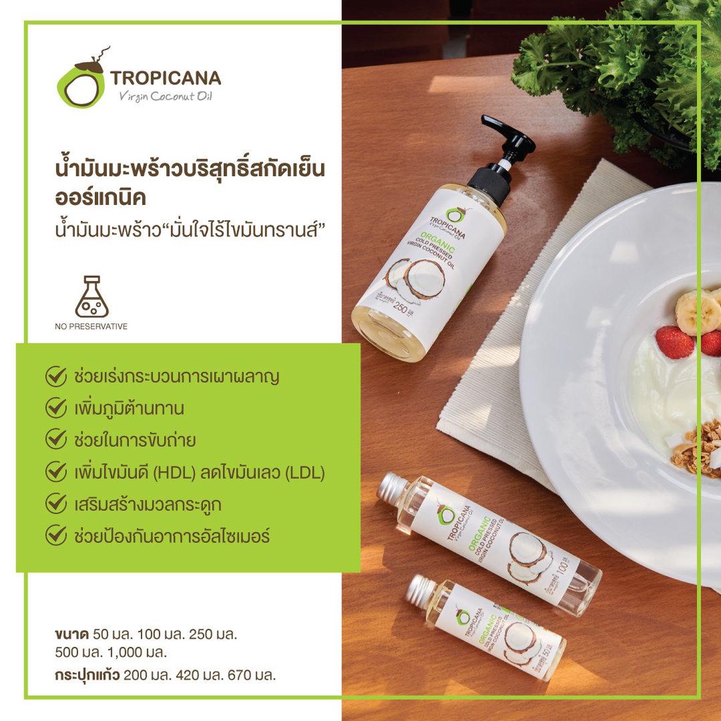 Tropicana Oil Organic Virgin Coconut Oil ทรอปิคานา น้ำมันมะพร้าว บริสุทธิ์ สกัดเย็น ออร์แกนิก