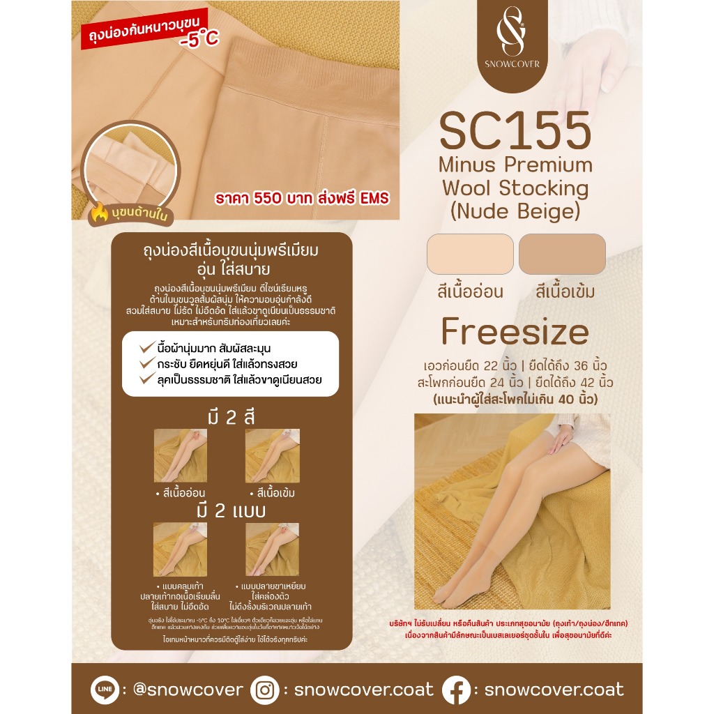 SNOWCOVER - รุ่น SC155 ถุงน่องบุขนพรีเมียม สีเนื้อ ใส่อุ่นติดลบ-5 ถึง 10 องศา กระชับ ไม่พอง ไม่อ้วน เป้าไม่ยาน