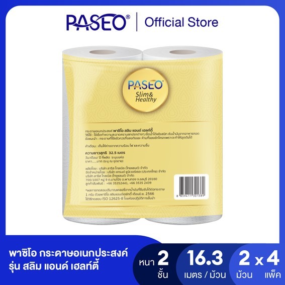 PASEO พาซิโอ รุ่น สลิม แอนด์ เฮลท์ตี้ กระดาษอเนกประสงค์ x 2 ม้วน (กระดาษทิชชู่ กระดาษซับน้ำมัน) X 4