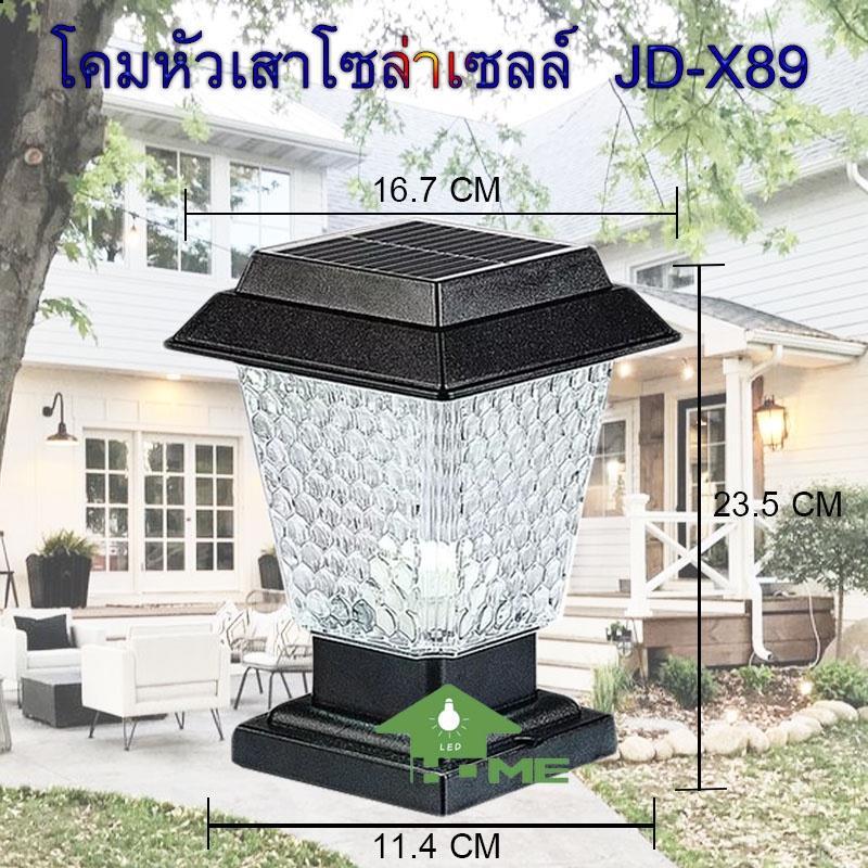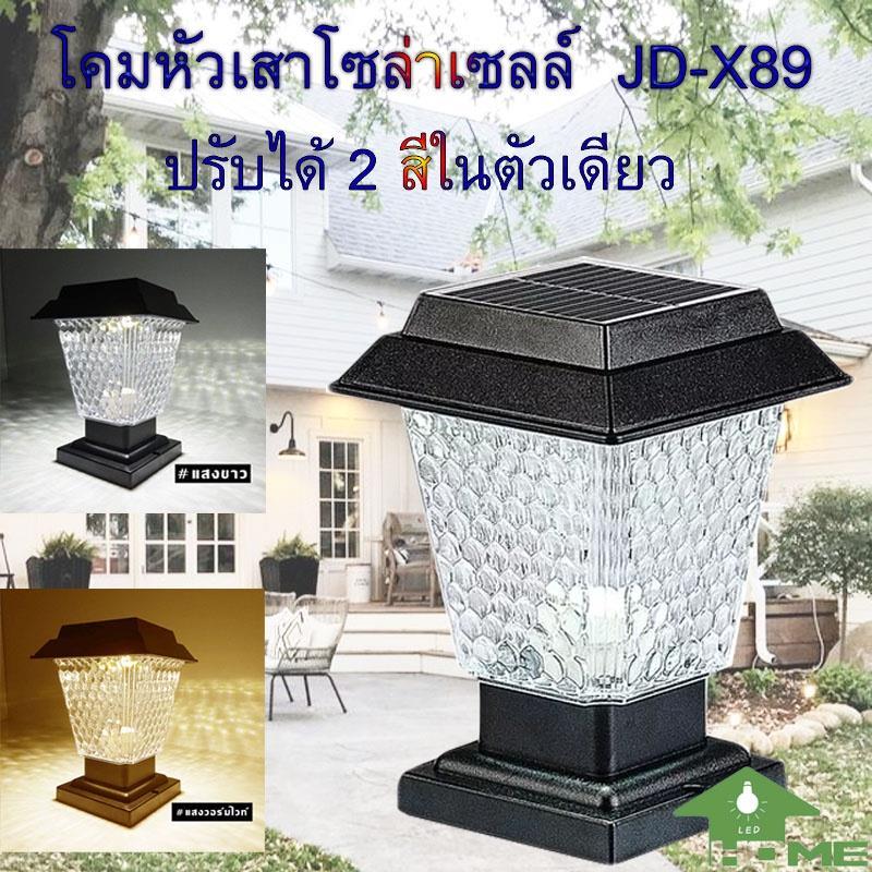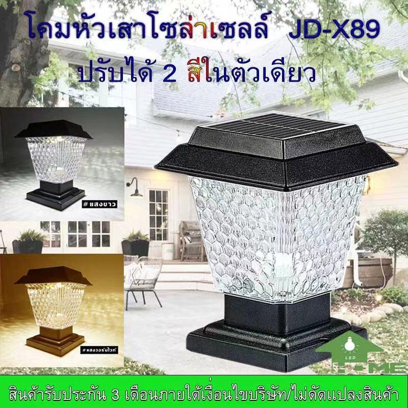 🔥ถูกสุดๆ🇹🇭 โคมไฟ หัวเสา X89 ไฟ2สี หัวเสาโซล่าเซลล์solar JD-X89ตัวใหญ่ โคมไฟโซล่าเซลล์ โคมไฟหัวเสา ใช้พลังงานแสงอาทิตย์
