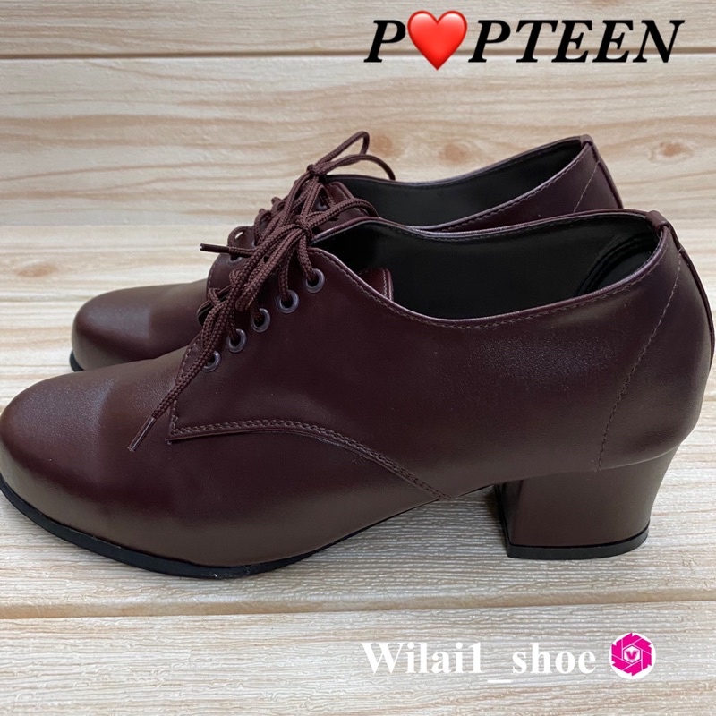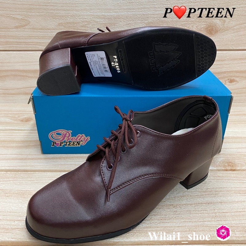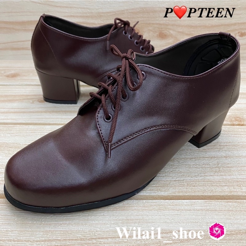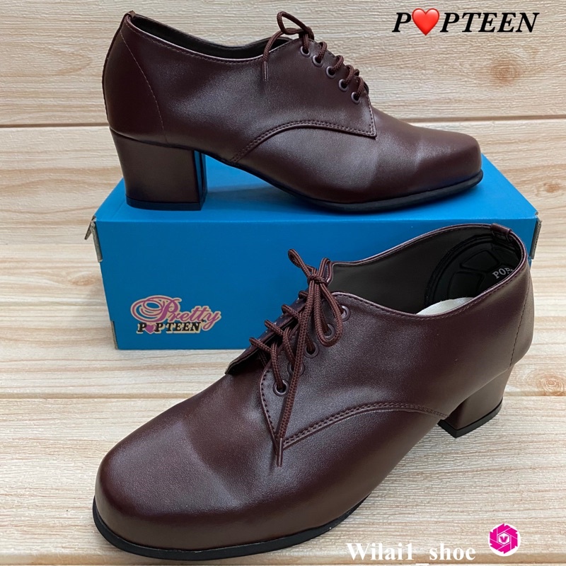 POPTEEN PT 2405 รองเท้าผู้กำกับลูกเสือ(35-42)ส้นสูง 2 นิ้ว สีน้ำตาล