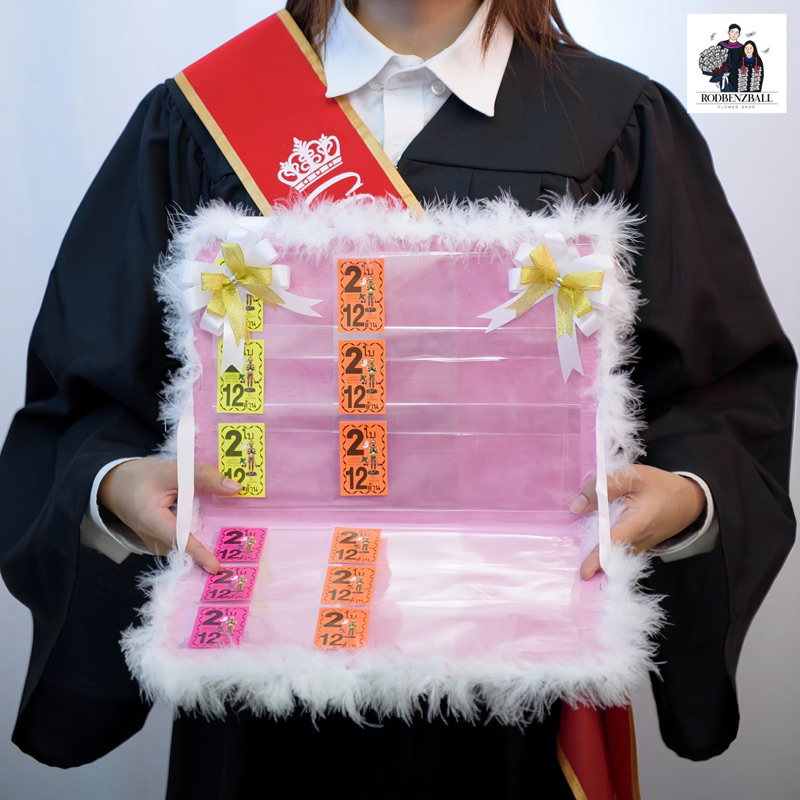 แผงลอตเตอรี่ใสเงิน บัณฑิตน้อย 12 ใบ ใส่ข้อความได้ ของขวัญรับปริญญา ของขวัญปัจฉิม ของขวัญบัณฑิตน้อย