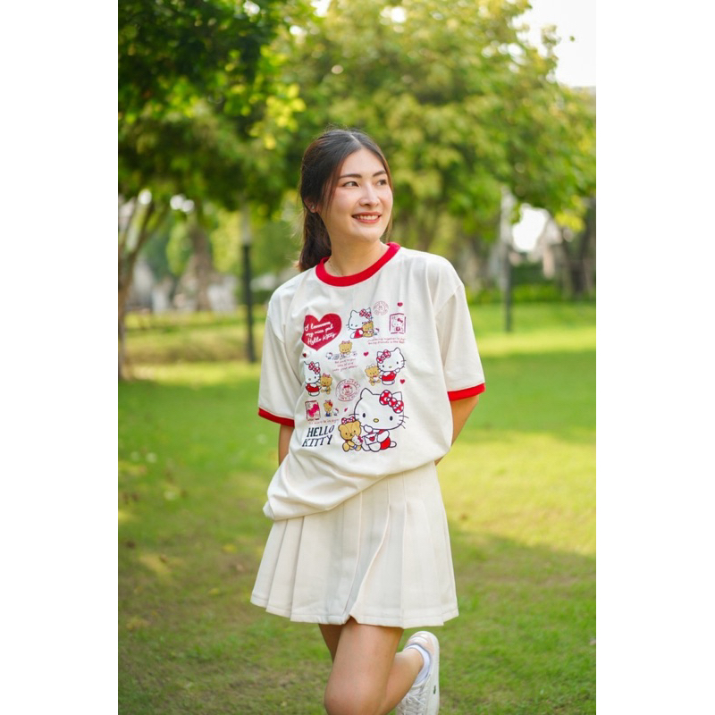 เสื้อยืดโอเวอร์ไซส์ QL คิตตี้จดหมาย