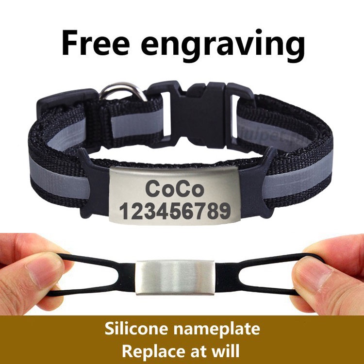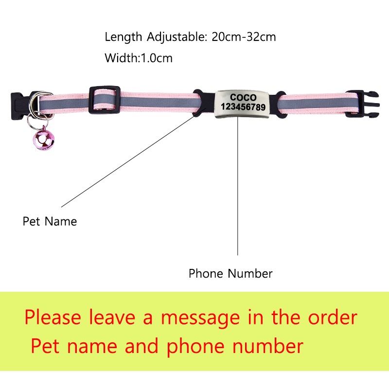 ฟรีชื่อ รหัส ที่กําหนดเองแท็กปลอกคอแมวระฆังสร้อยคอความปลอดภัยสะท้อนแสงไนล่อนลูกแมวแมวแท็กส่วนบุคคลแกะสลักสุนัขแท็ก