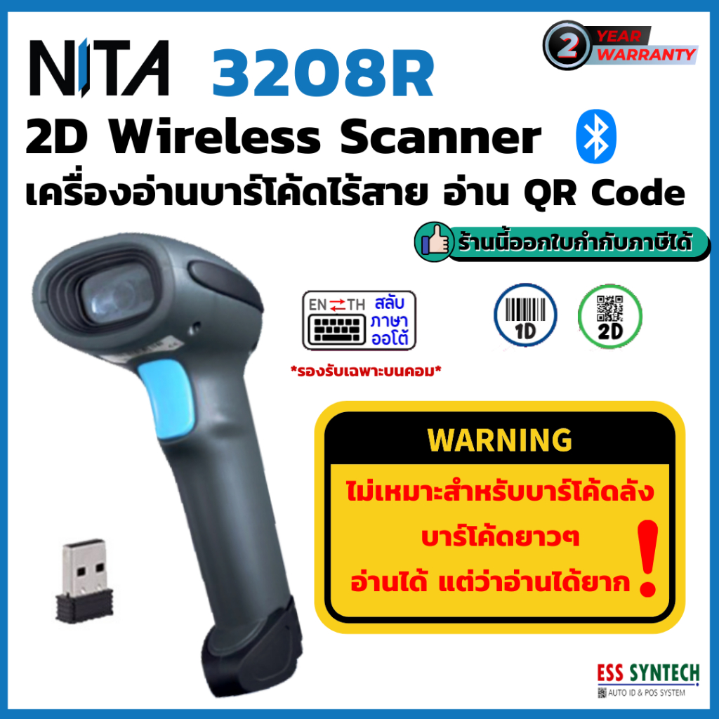 NITA 3208R เครื่องอ่าน QR Code แบบไร้สาย Wireless 2D Barcode Scanner Bluetooth รองรับอุปกรณ์ทุกชนิด