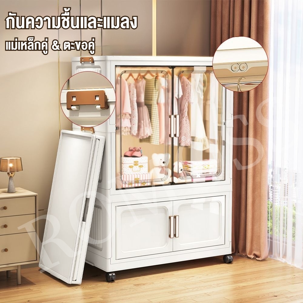 ROMO ตู้เสื้อผ้าพับ ตู้เสื้อผ้า สวย ตู้เก็บของ ทนทาน กันฝุ่นและกันน้ำ ความจุสูง ตู้เสื้อผ้าเด็ก