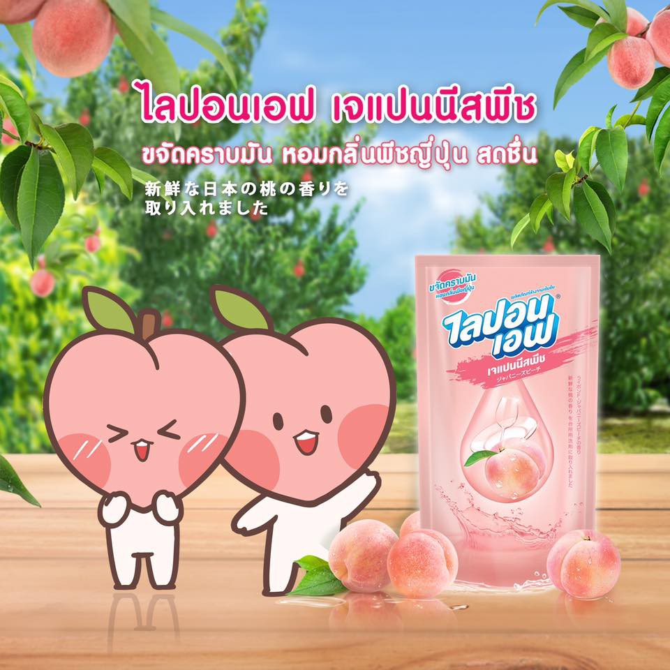 Lipon F ผลิตภัณฑ์ล้างจาน ไลปอนเอฟ เจแปนนีส พีช (Japanese Peach) ชนิดถุงเติม 450 มล. 6 ถุง