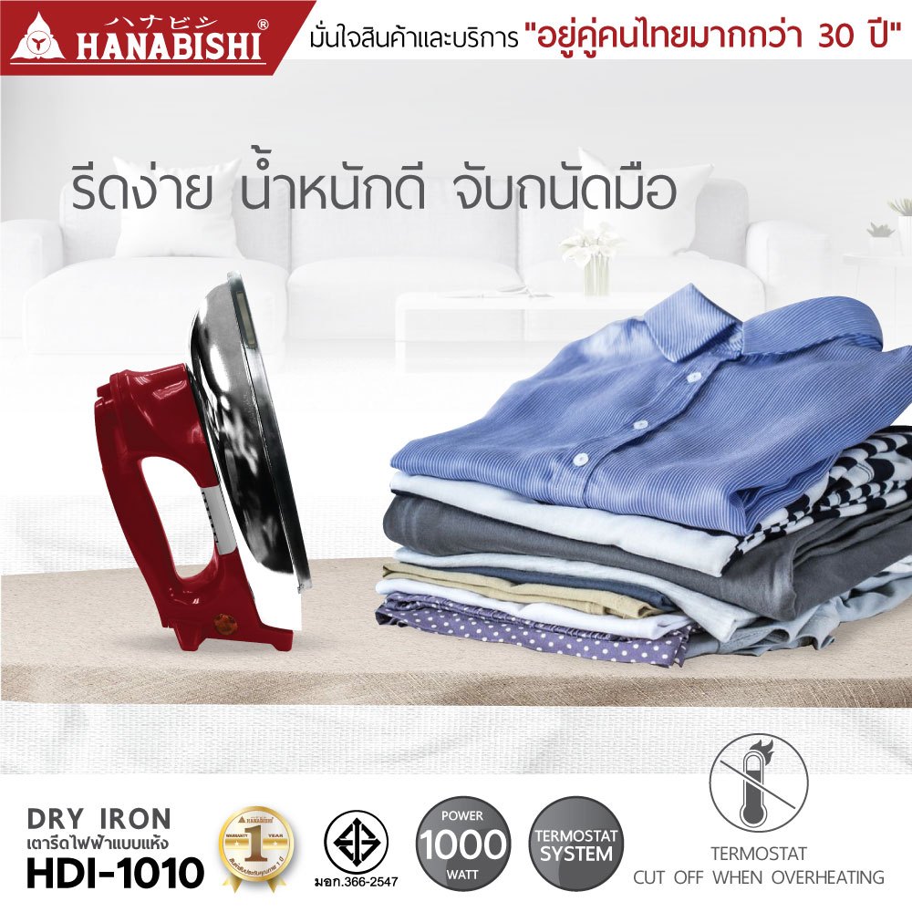 HANABISHI เตารีดไฟฟ้า รุ่น HDI-1010 เตารีดแบบแห้ง มีประกันสินค้า 3 ปี