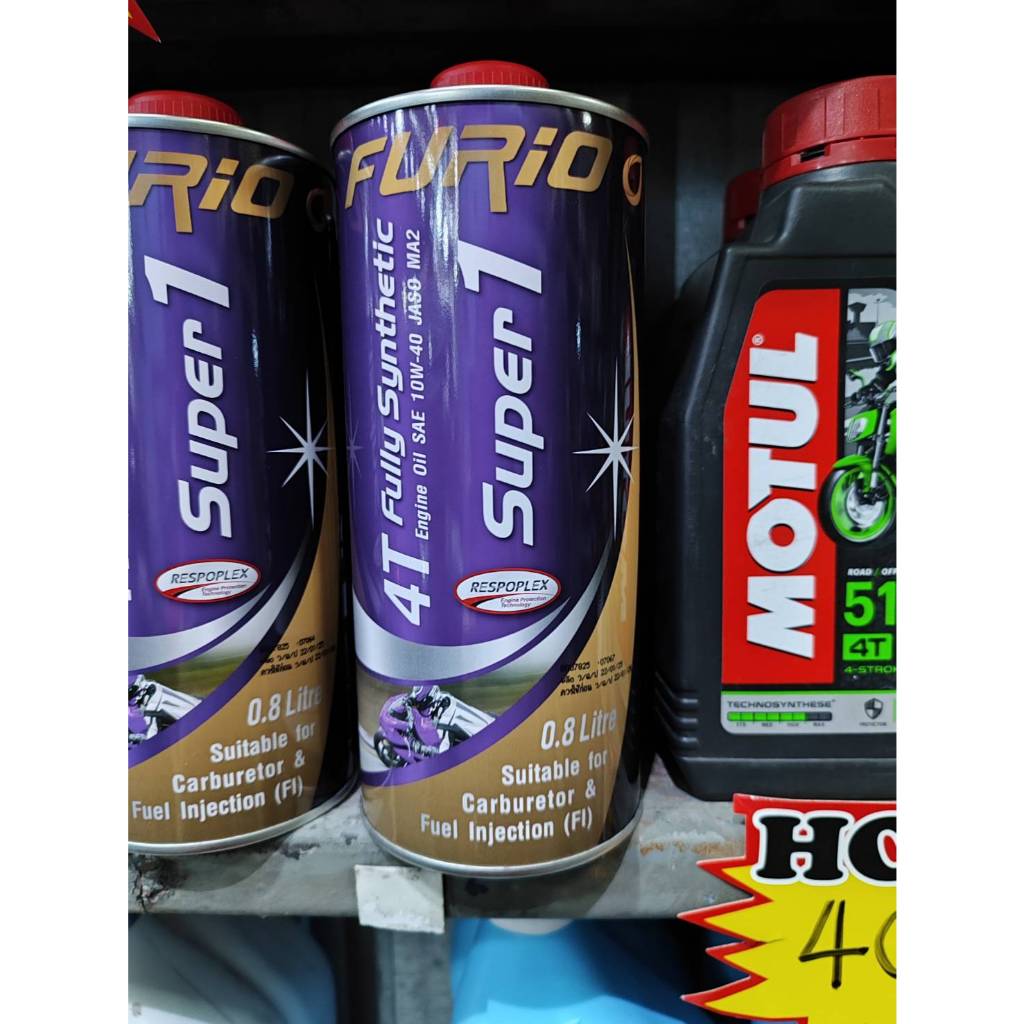 ขนาด0.8L น้ำมันเครื่องมอเตอร์ไซด์สังเคราะห์ 100% บางจาก ฟูริโอ ซุปเปอร์ 1 BCP FURiO Super1 4T Synthetic SAE 10W-4
