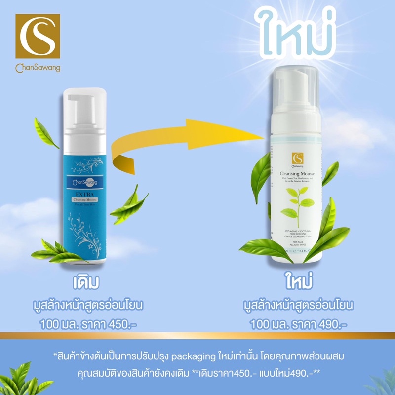 จันทร์สว่าง คลีนซิ่งมูส Chansawang CLEANSING MOUSSE สำหรับผิวบอบบาง