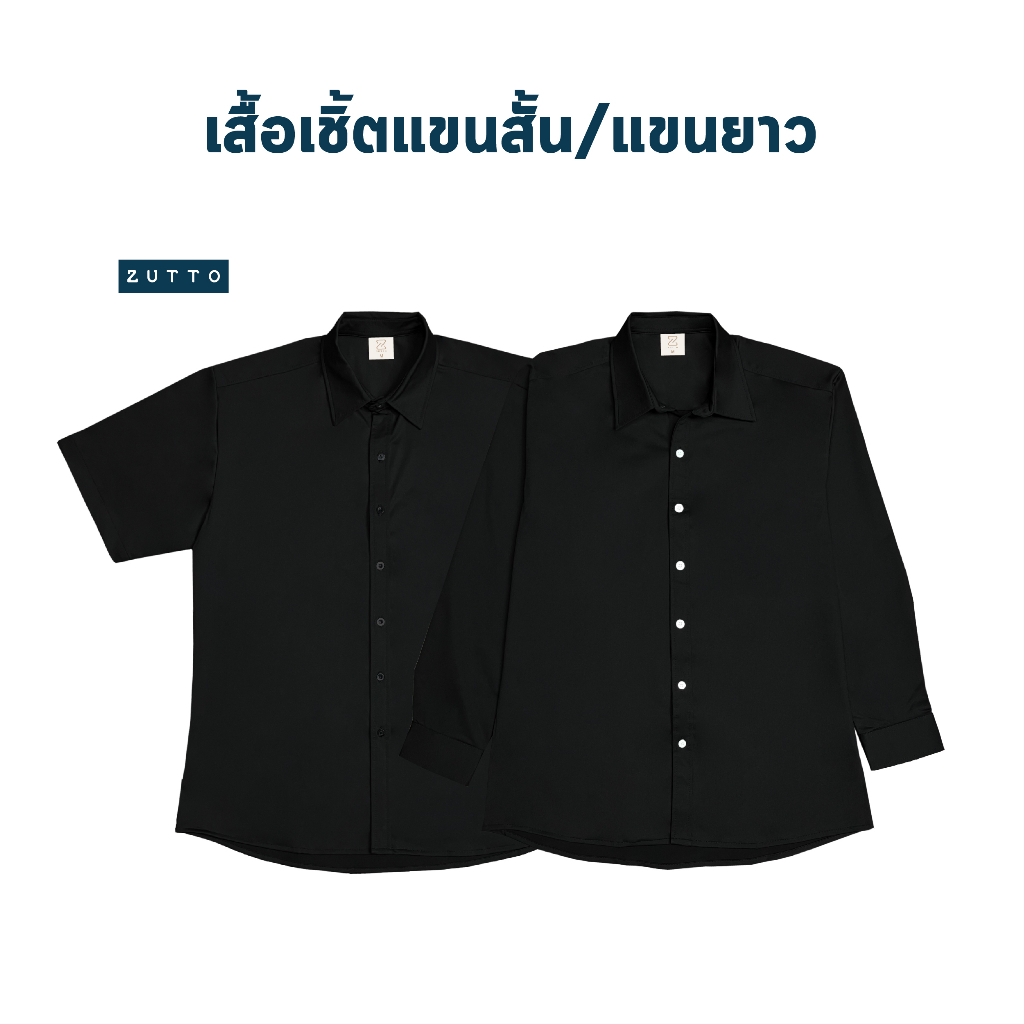 ZUTTO เสื้อเชิ้ตสีดำพรางพุง ไซส์ใหญ่สำหรับคนอ้วน