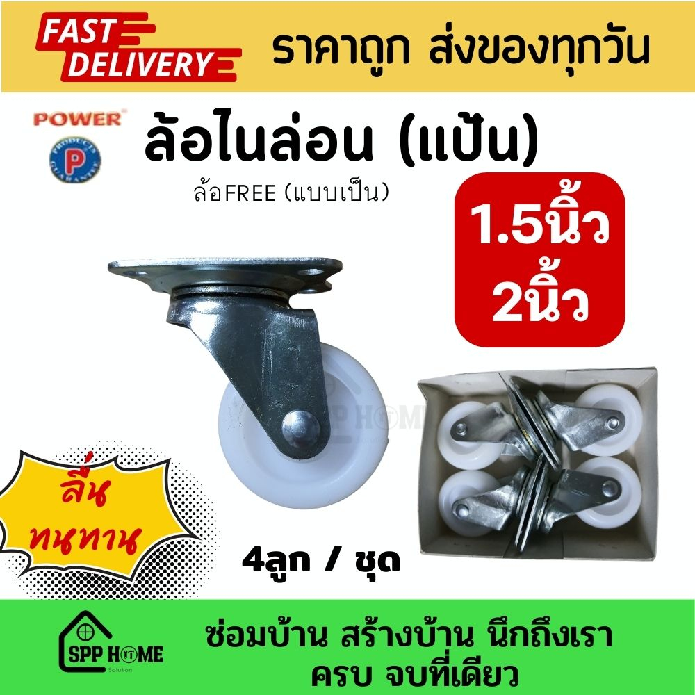POWER ล้อไนล่อน สีขาว ขนาด1.5 - 2นิ้ว แบบแป้น/แบบสกรู ล้อเป็น(FREE) 4ลูก/ชุด ลื่น ทนทาน คุณภาพดี