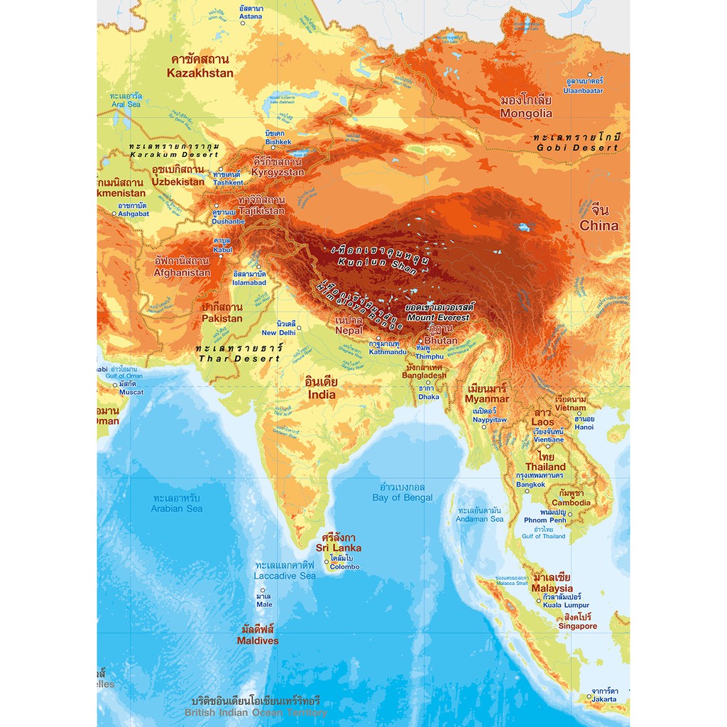 โปสเตอร์แผนที่ชุดกายภาพทวีปเอเชีย 2 ภาษา Physical Map of Asia