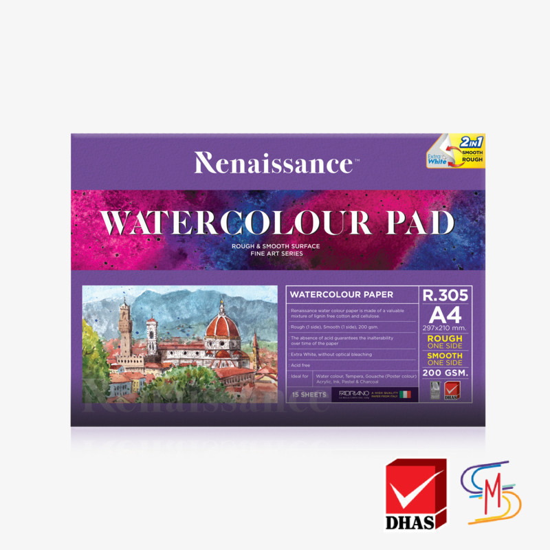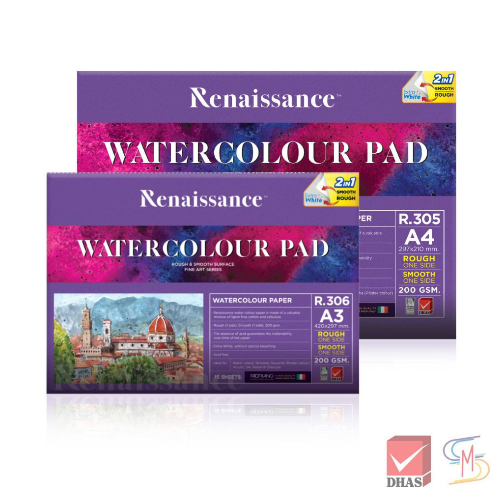 Renaissance สมุดวาดเขียน กระดาษ 100 ปอนด์ เนื้อหยาบ + เรียบ หนา 200 G 15 แผ่น (1 เล่ม)