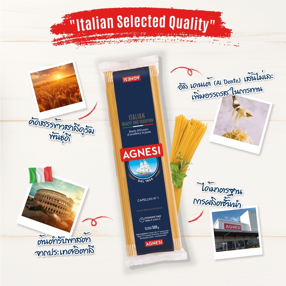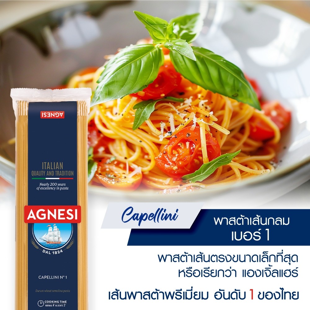 แอคเนซี คาเปลลินี เบอร์ 1 (พาสต้าเส้นกลม เบอร์ 1) 500 กรัม │ Agnesi Capellini No.1 500 g