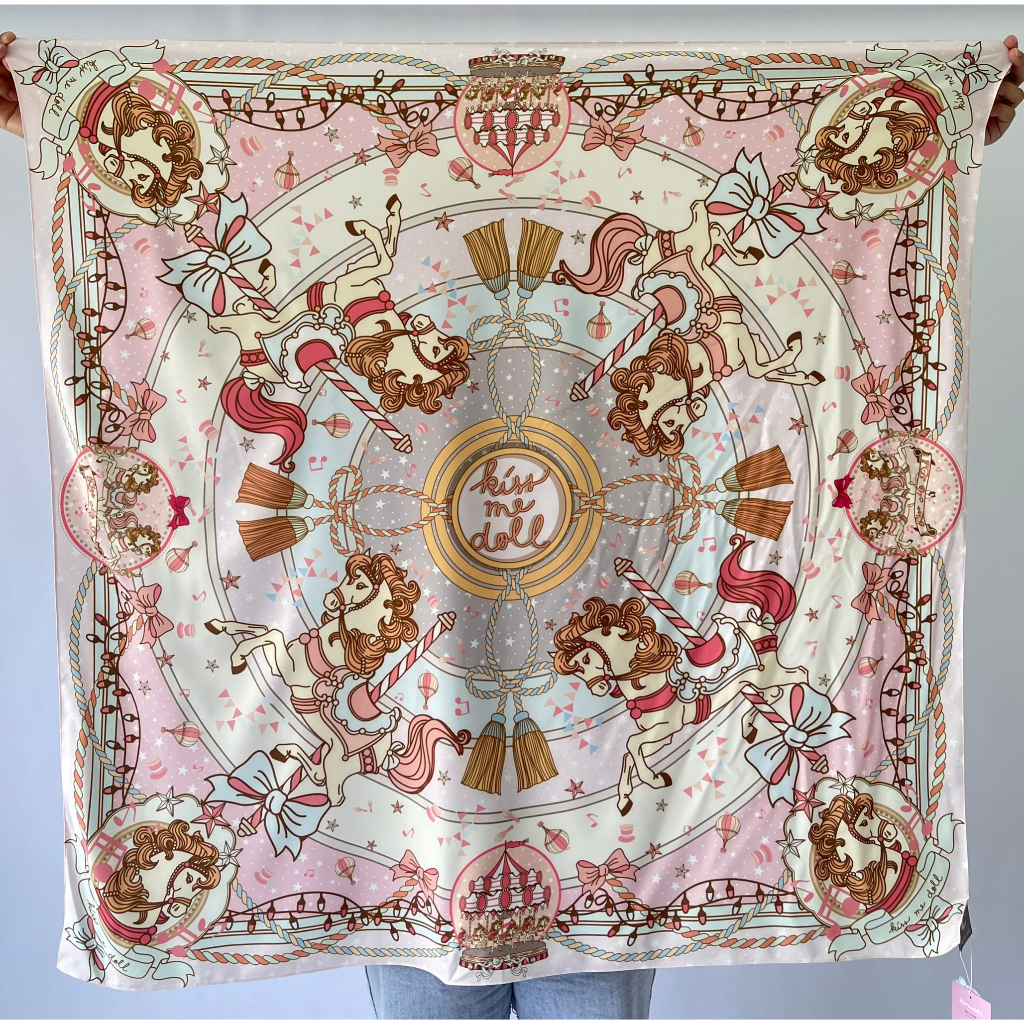 Kiss Me Doll ผ้าพันคอ/ผ้าคลุมไหล่ New collection ลาย Carousel ขนาด 100x100 cm.