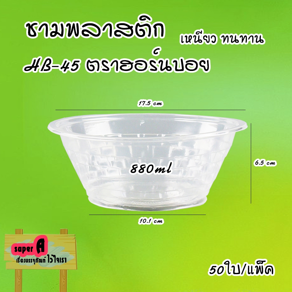 ชามพลาสติก 880ml (50ใบ/เเพ็ค) ไม่มีฝา ทนความร้อนได้ดี ยี่ห้อฮอร์นบอย เบอร์ 45 ชามก๋วยเตี๋ยว ชามใส่อาหาร