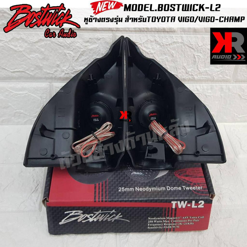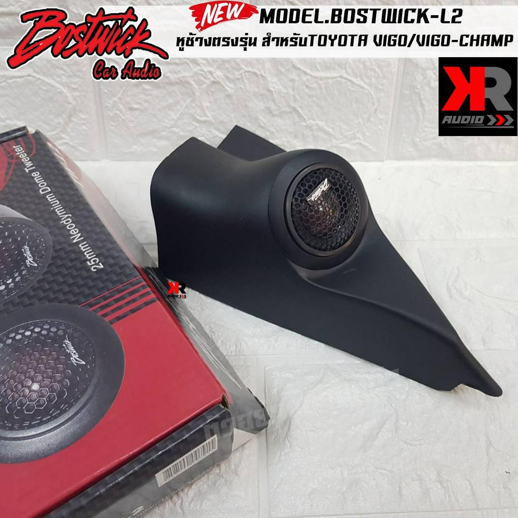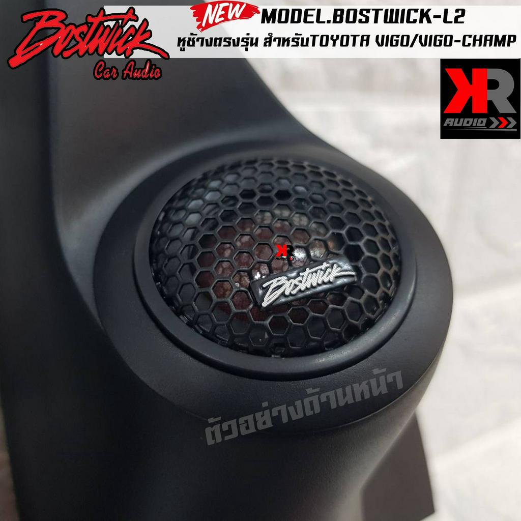 หูช้างตรงรุ่น BOSTWICK-L2 สำหรับ TOYOTA VIGO / VIGO CHAMP สีดำ เจาะช่องให้เรียบร้อย รุ่นนี้เสียงดีคมชัดใสมาก ฟังไม่แสบหู