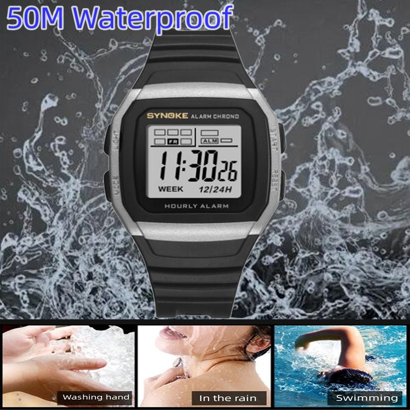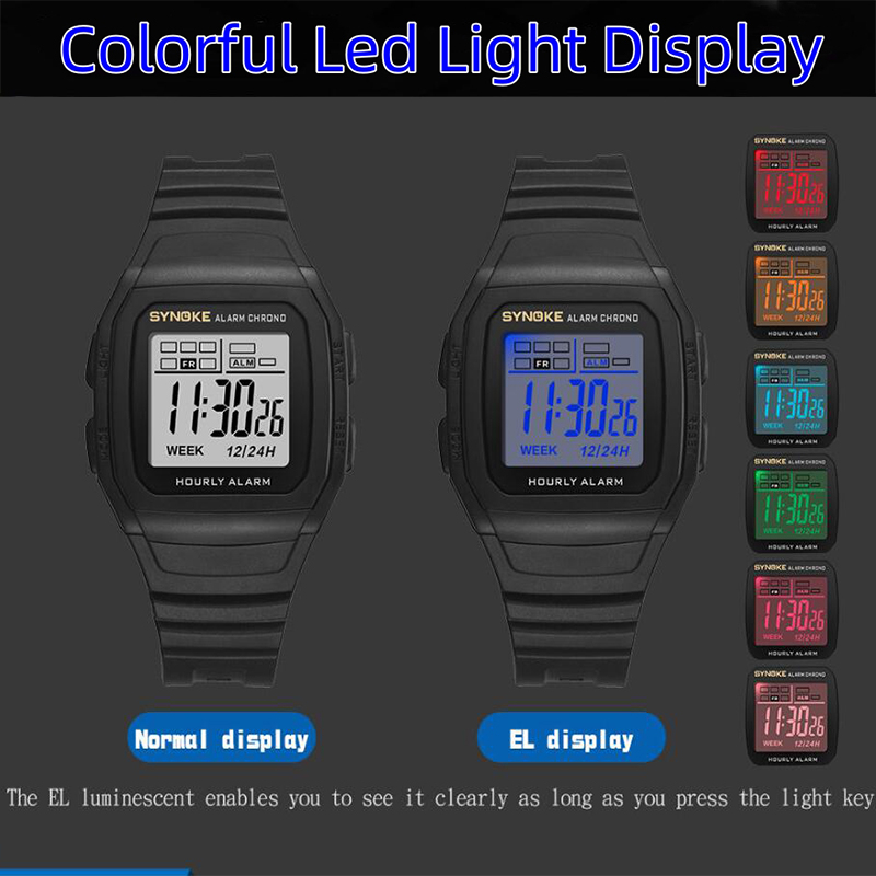 นาฬิกาข้อมือดิจิทัล สายหนัง PU นิ่ม 5 ATM มีไฟ Led หลากสี สไตล์สปอร์ต แฟชั่นสําหรับผู้ชาย