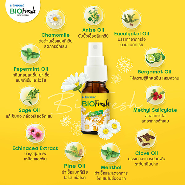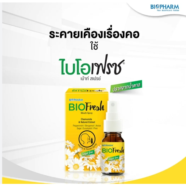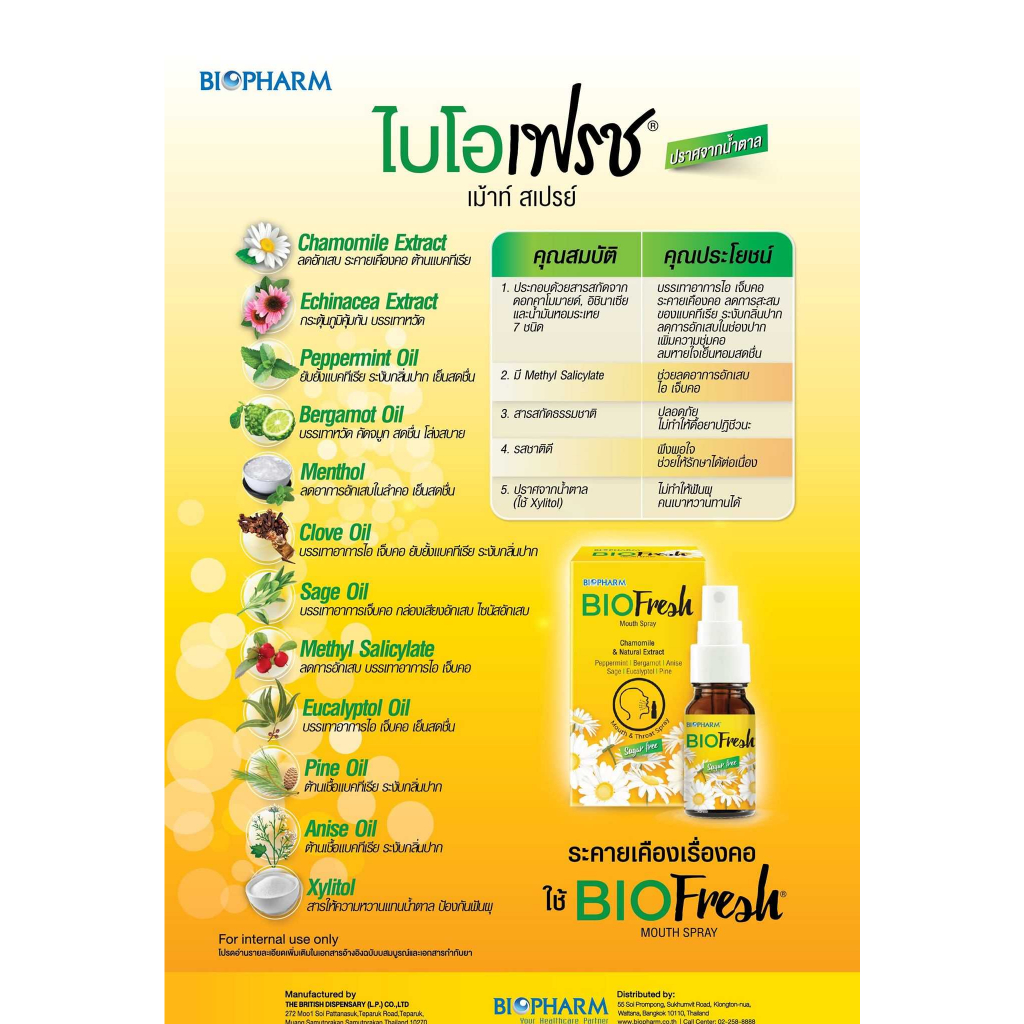 BIOPHARM BIOfresh Mouth Spray 15mL (สเปรย์พ่นคอ) สารสกัดสมุนไพรธรรมชาติ 15ml.