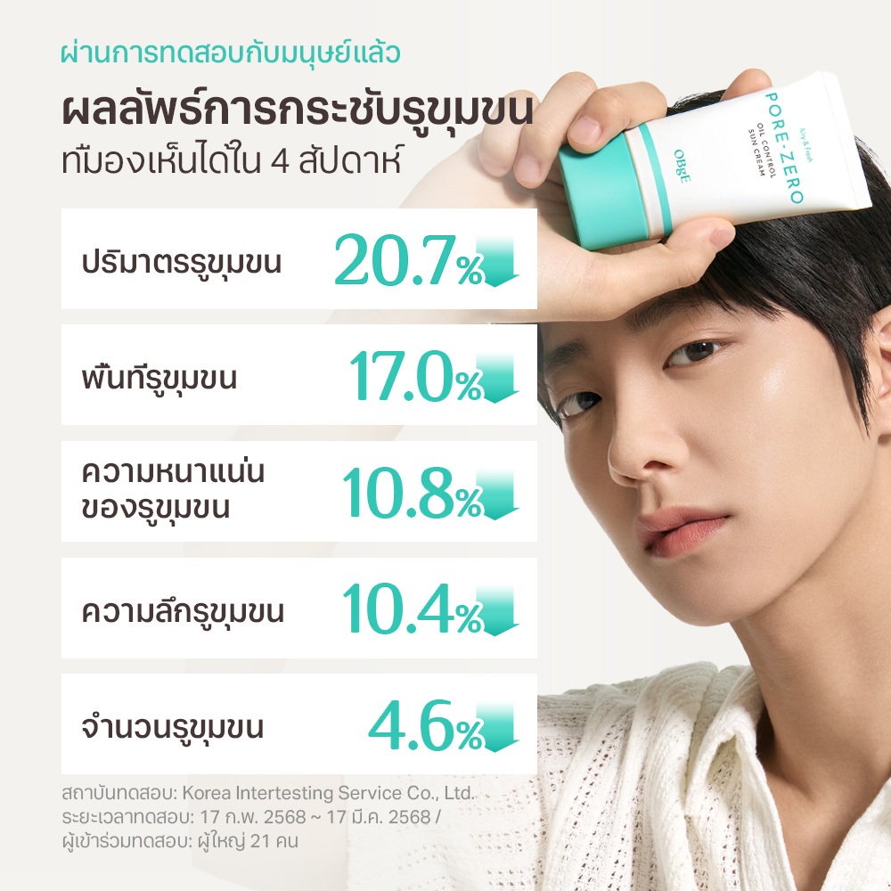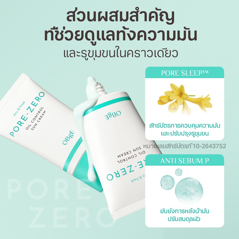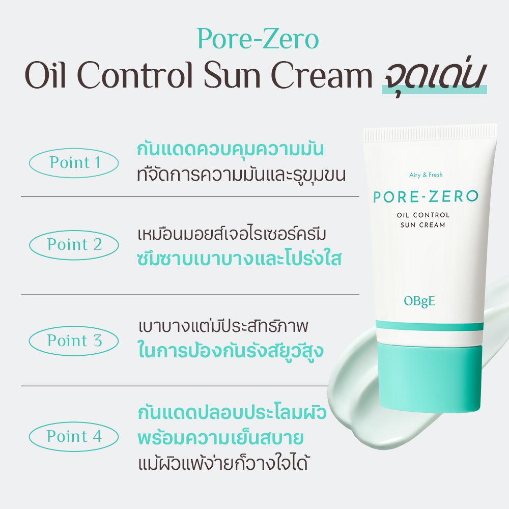 [OBgE Official] Pore Zero Oil Control Sun Cream SPF50+ PA++++ 50ml | ลดความมันเงา | กันแดดแมทไม่มัน | เบาและใส | กระชับรูขุมขน | ให้ความเย็นและปลอบประโลมผิว