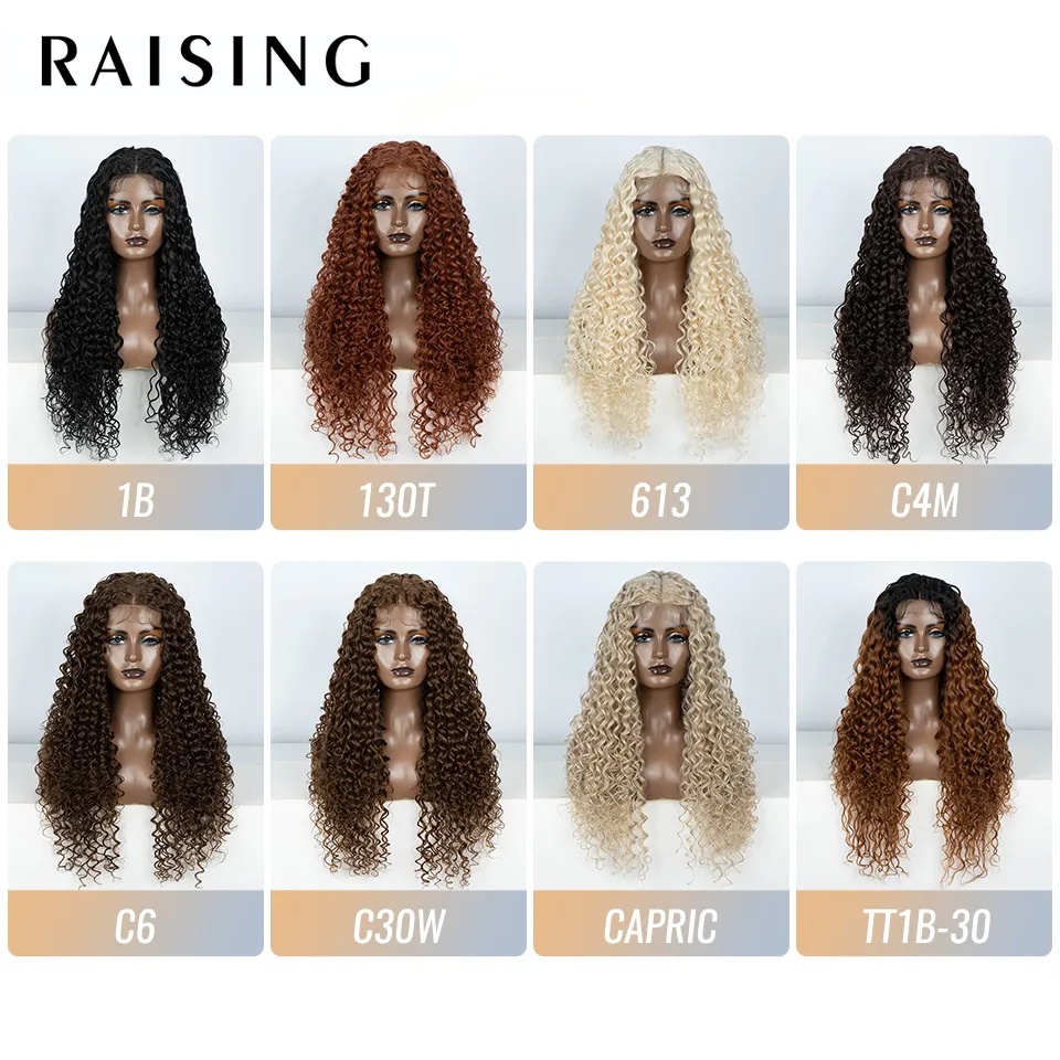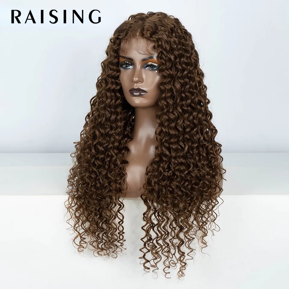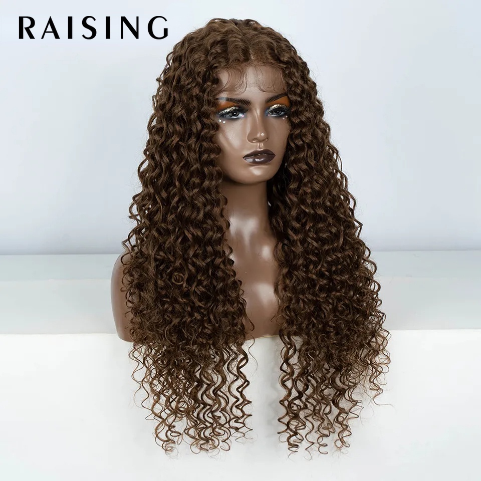 Raising วิกผมสังเคราะห์ หยิก ลูกไม้ด้านหน้า สีดํา สีน้ําตาลบลอนด์ สีแดง ทนความร้อน สําหรับผู้หญิง 30 นิ้ว